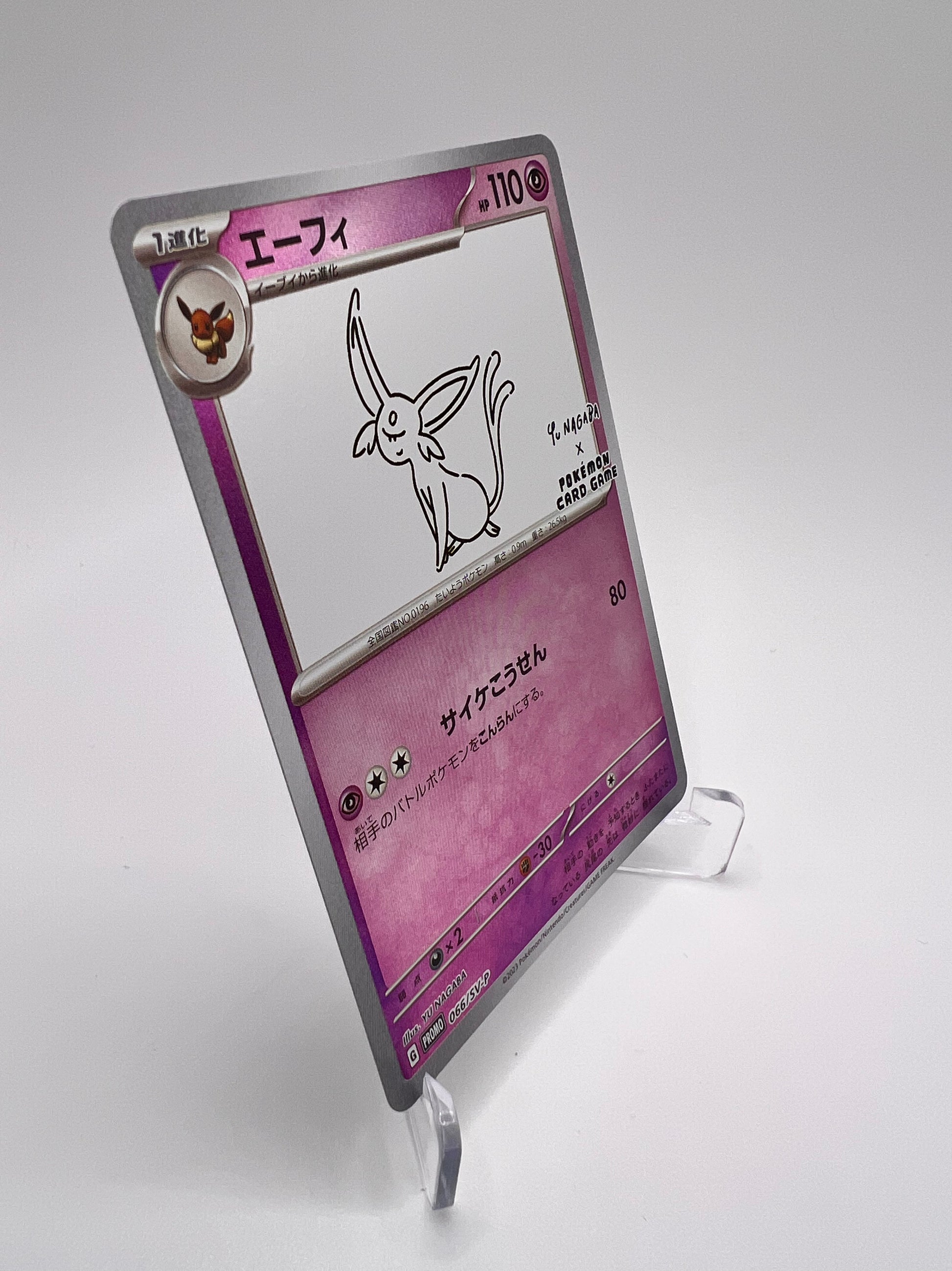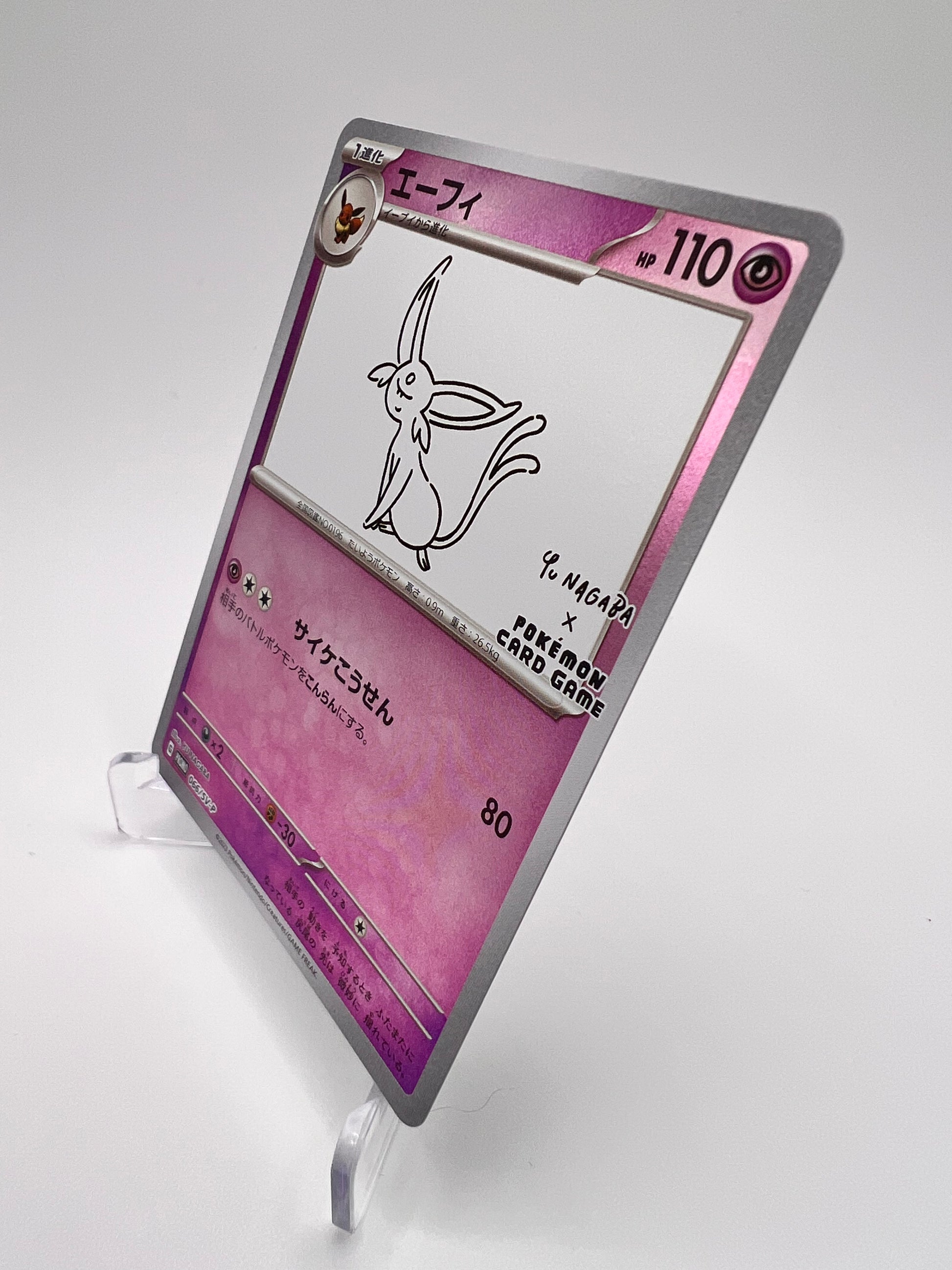 🌀 Carte promo officielle de la collaboration Pokémon × Yu Nagaba, illustrant Mentali dans le style minimaliste et raffiné caractéristique de l’artiste japonais. 🎨 Lignes épurées, contraste fort et expression douce — une des cartes les plus appréciées du set des 9 Évolitions Nagaba. 🇯🇵 Version japonaise rare, distribuée uniquement au Japon lors de la campagne spéciale Yu Nagaba. 💎 État : Near Mint (très belle conservation) – fines marques possibles, invisibles à l’œil nu. 🔥 Un must-have pour tout collectionneur d’Évolitions ou d’artworks alternatifs.