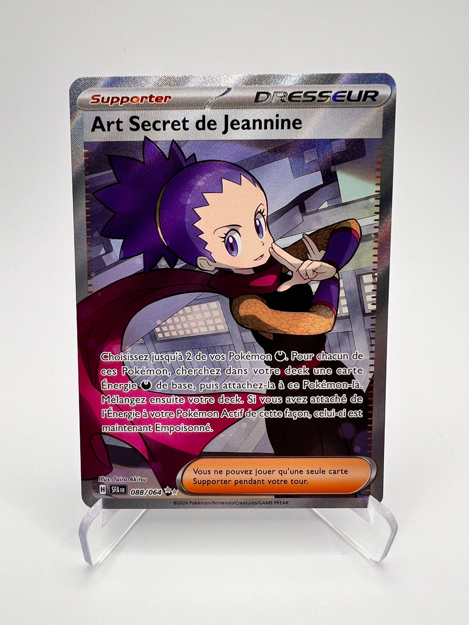 🔥 Une carte secrète ultra rare et convoitée : Avec sa numérotation 088/064, Art Secret de Jeannine se distingue par son illustration vibrante et son impact tactique en jeu, parfaite pour renforcer un deck compétitif et sublimer une collection prestigieuse.