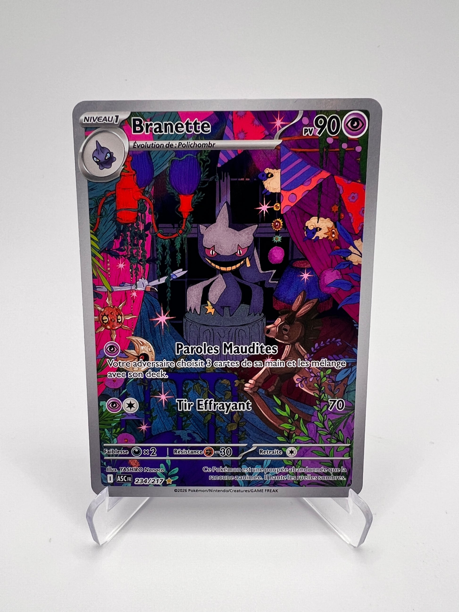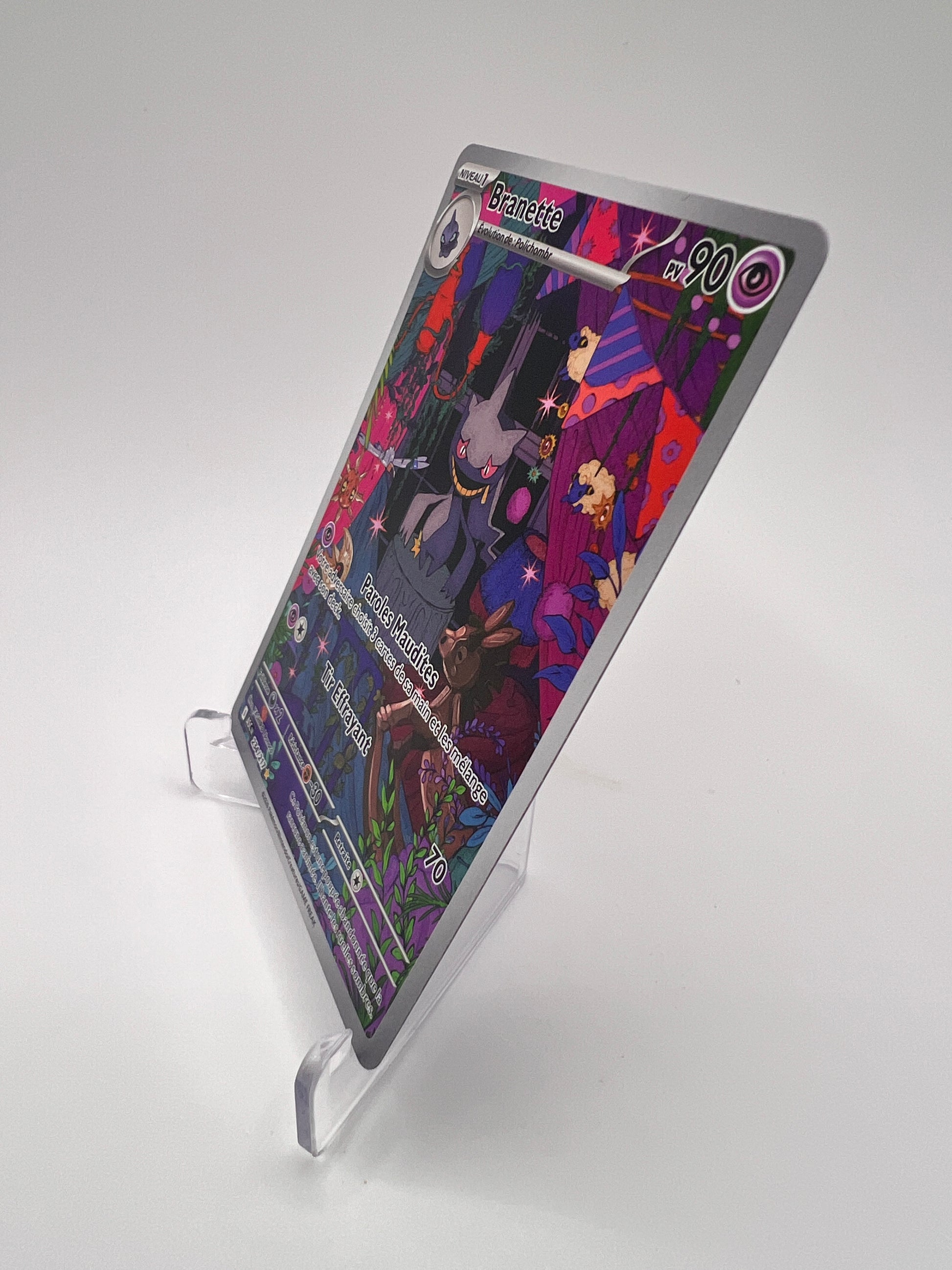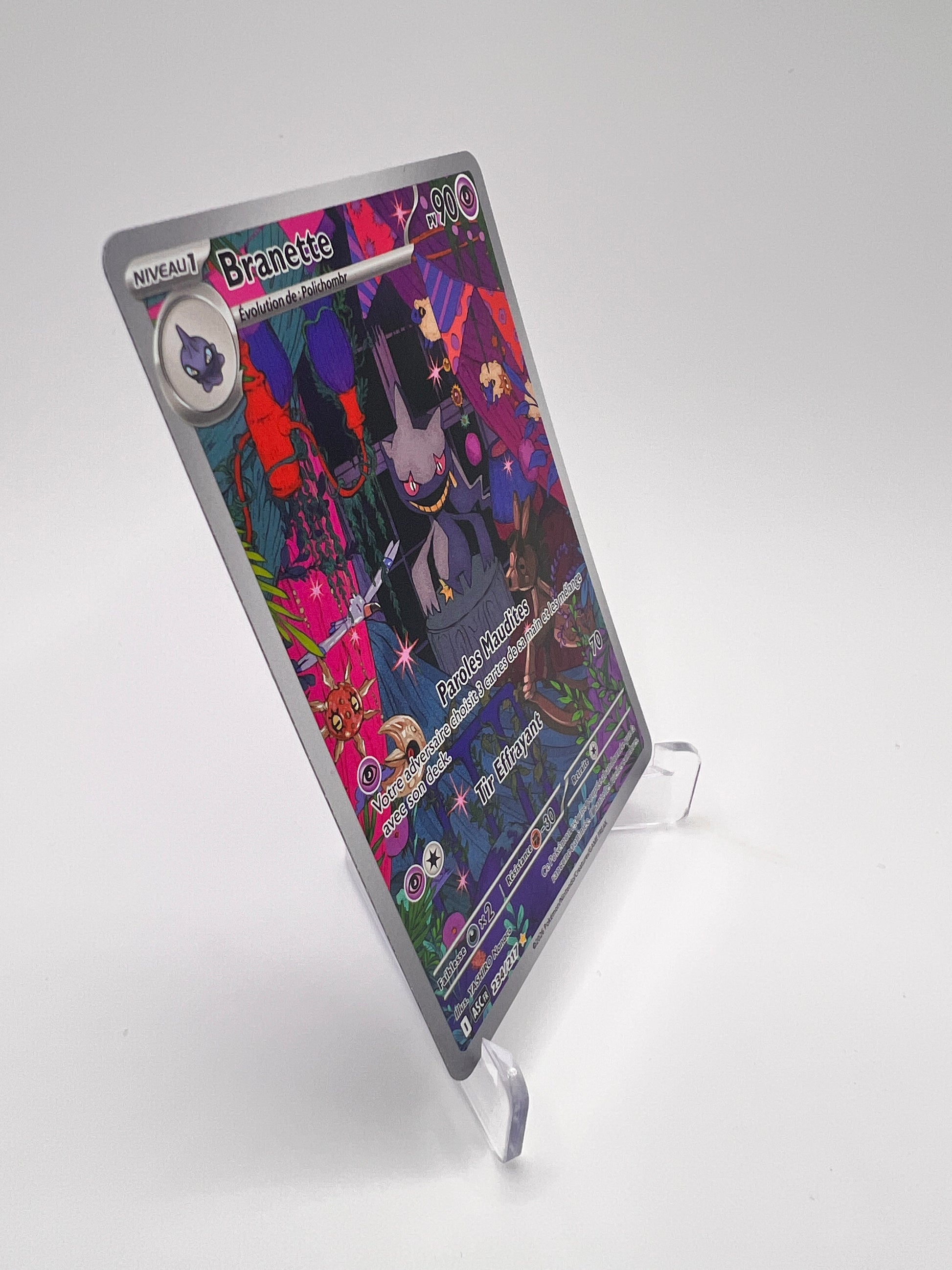 Branette, Pokémon au design sombre et mystérieux, est ici parfaitement mis en valeur dans une illustration travaillée qui renforce son identité. Les cartes IR sont aujourd’hui incontournables pour les collectionneurs recherchant des visuels forts sans forcément aller sur les SIR.