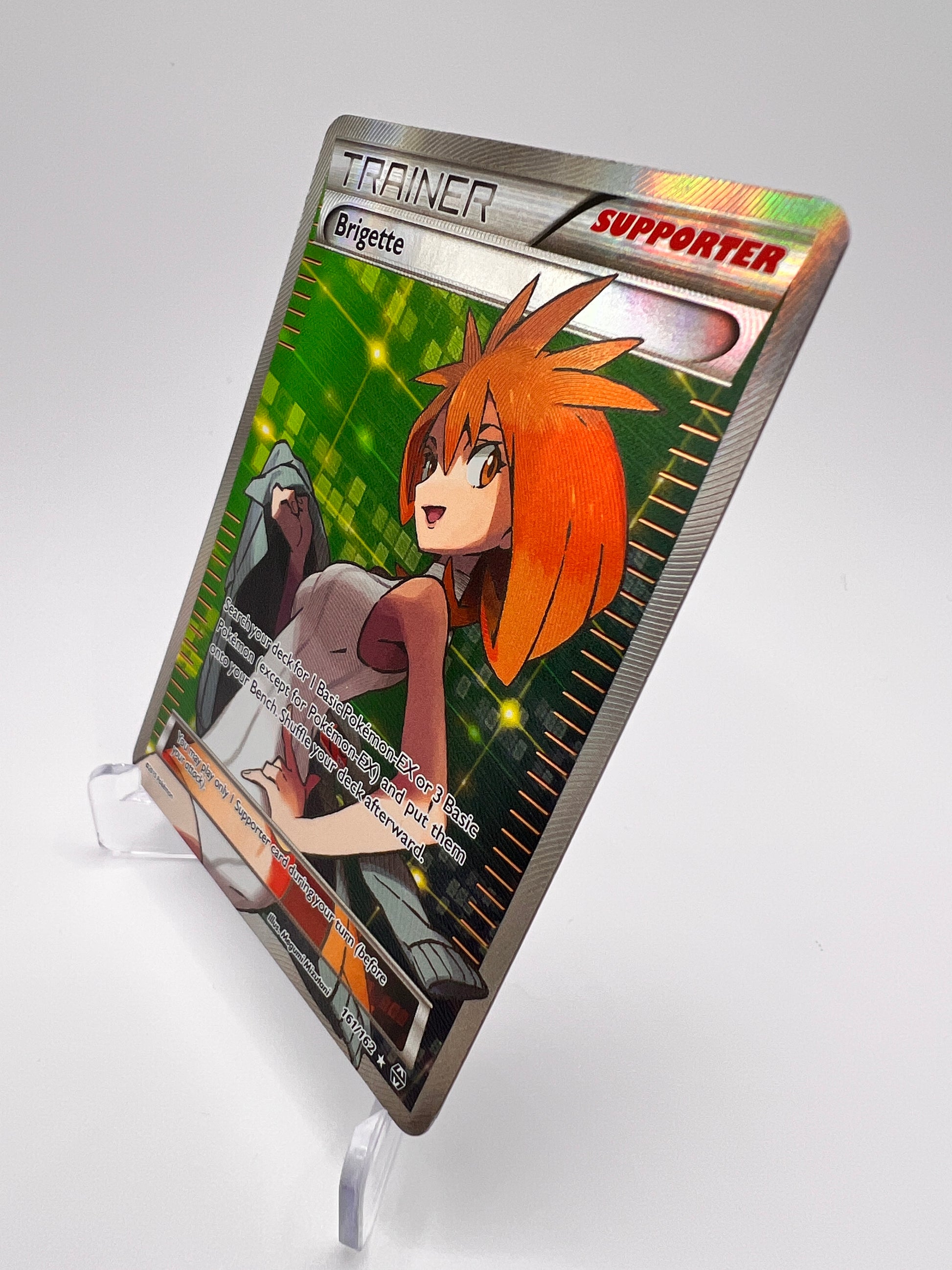 Renforcez votre collection ou votre deck avec Brigette 161/162, une carte Dresseur Supporter Full Art issue de l’extension Breakthrough, en version anglaise et en état excellent. Cette carte présente la célèbre chercheuse Pokémon dans une illustration lumineuse et pleine de caractère.