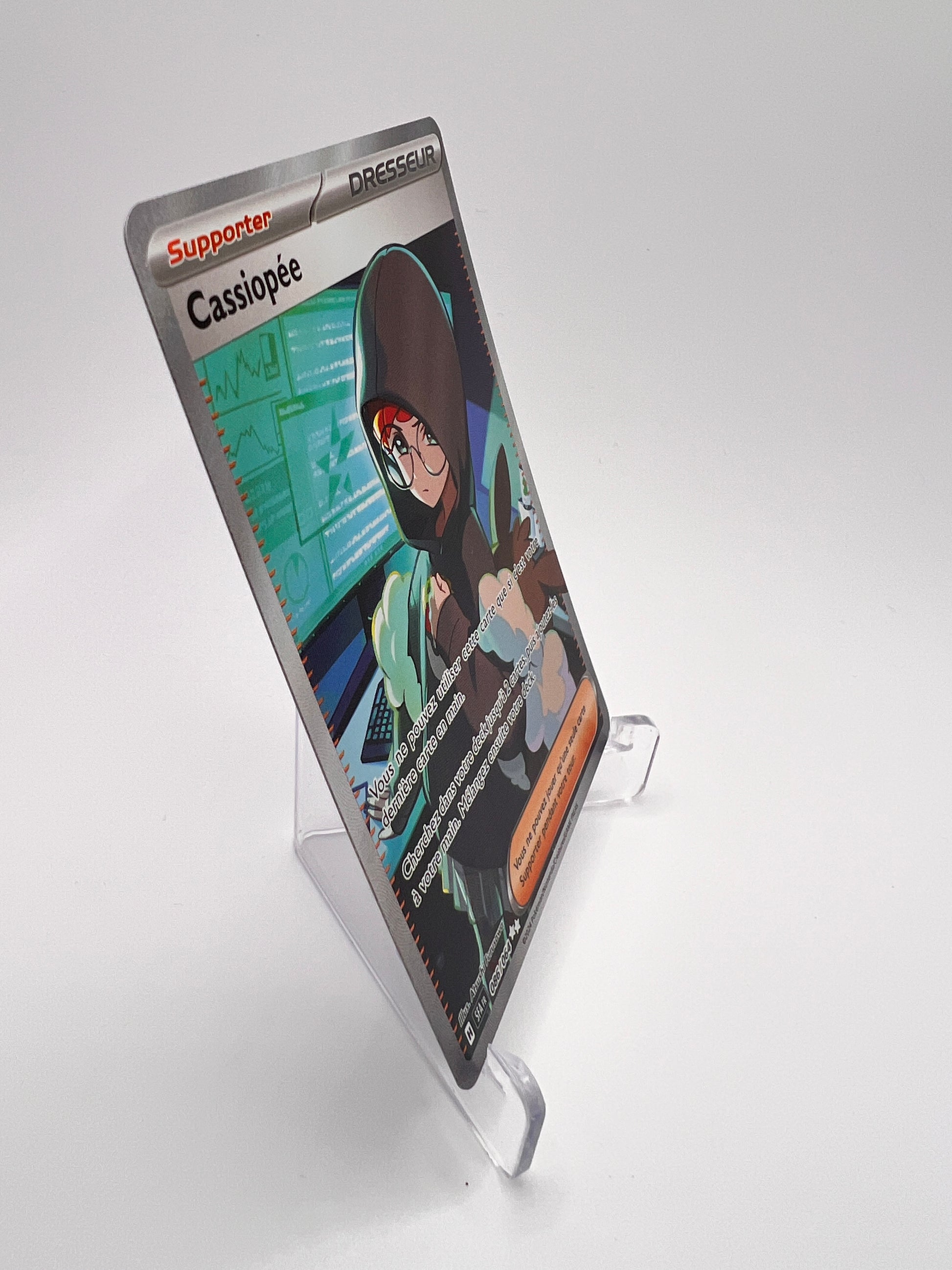 Découvrez Cassiopée 086/064, une carte issue de l’extension Fable Nébuleuse, en état Near Mint. Ce Dresseur Supporter Full Art, mettant en avant Cassiopée, l’un des personnages marquants de l’univers Pokémon, est une carte convoitée tant pour sa valeur stratégique que pour son design captivant.
