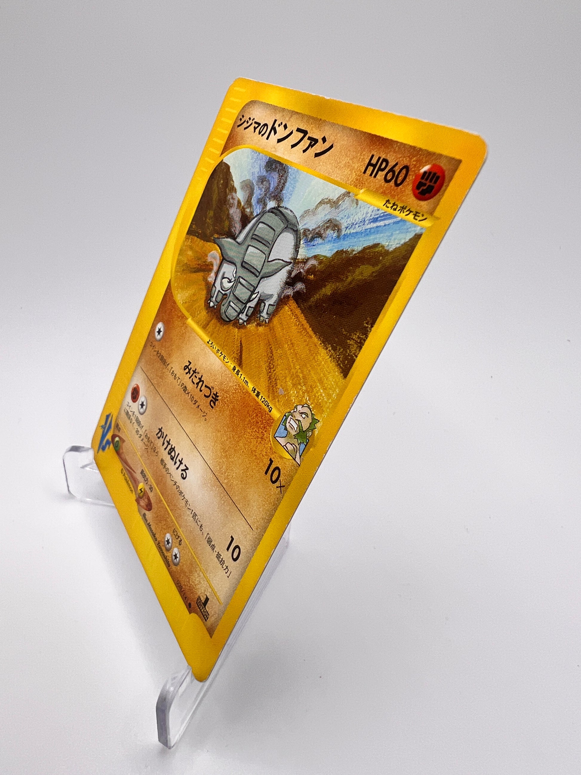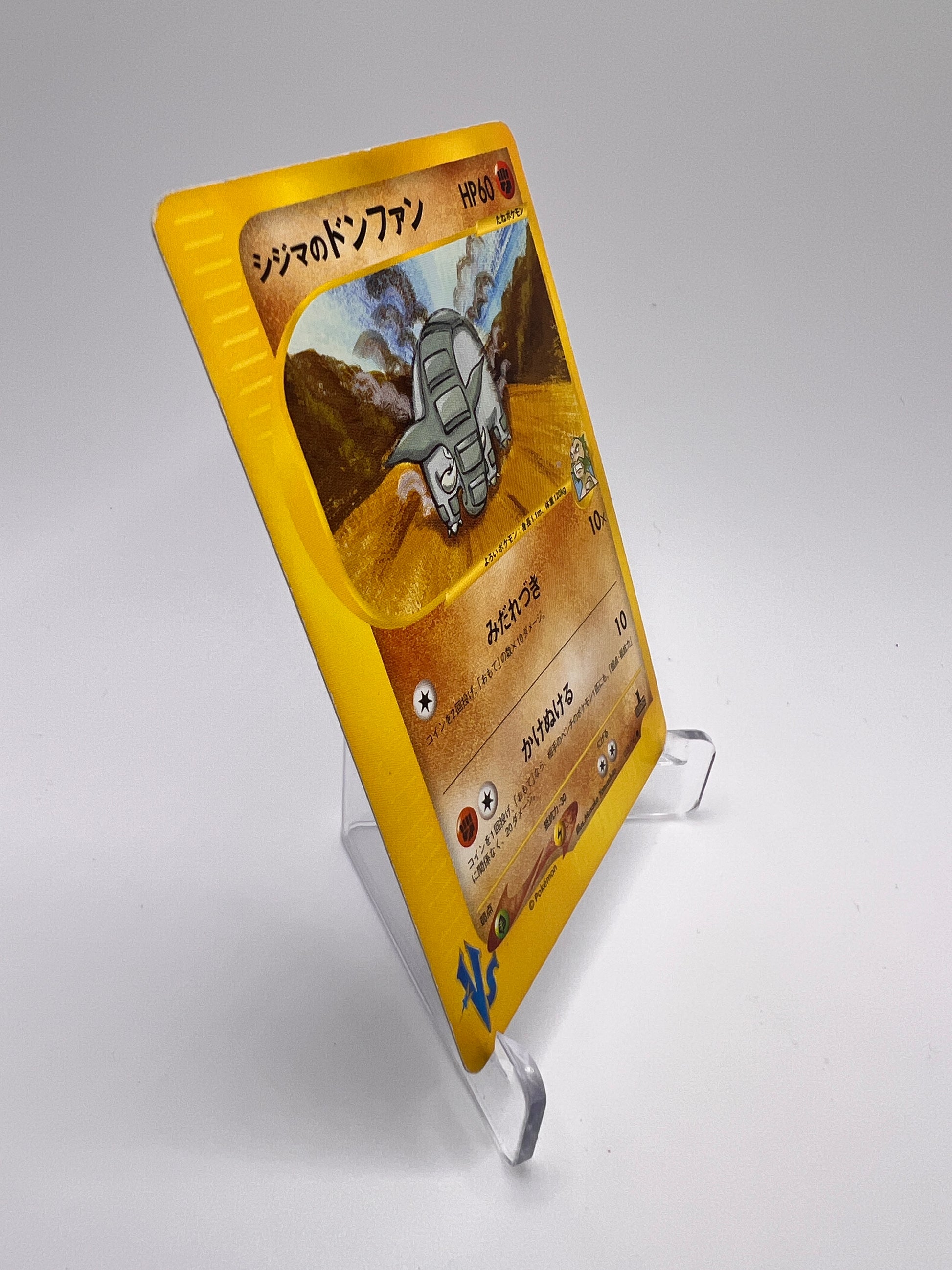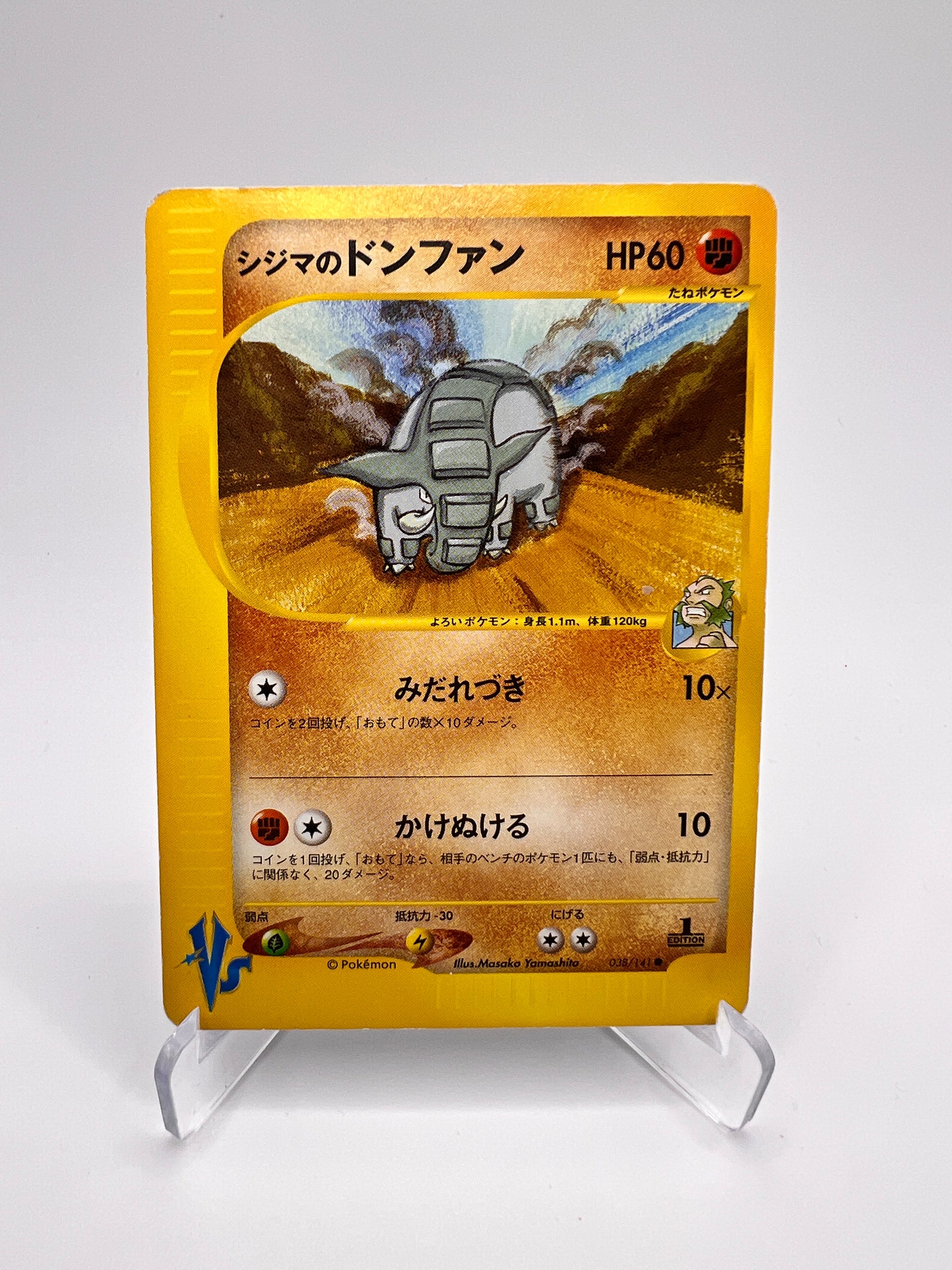 Donphan de Chuck incarne la puissance brute et la solidité, signature du champion de type Combat de Johto. Les cartes Pokémon VS japonaises sont très appréciées pour leur identité forte liée aux Champions d’Arène et leur tirage plus confidentiel. Une pièce cohérente et recherchée pour un set VS Première Édition authentique.