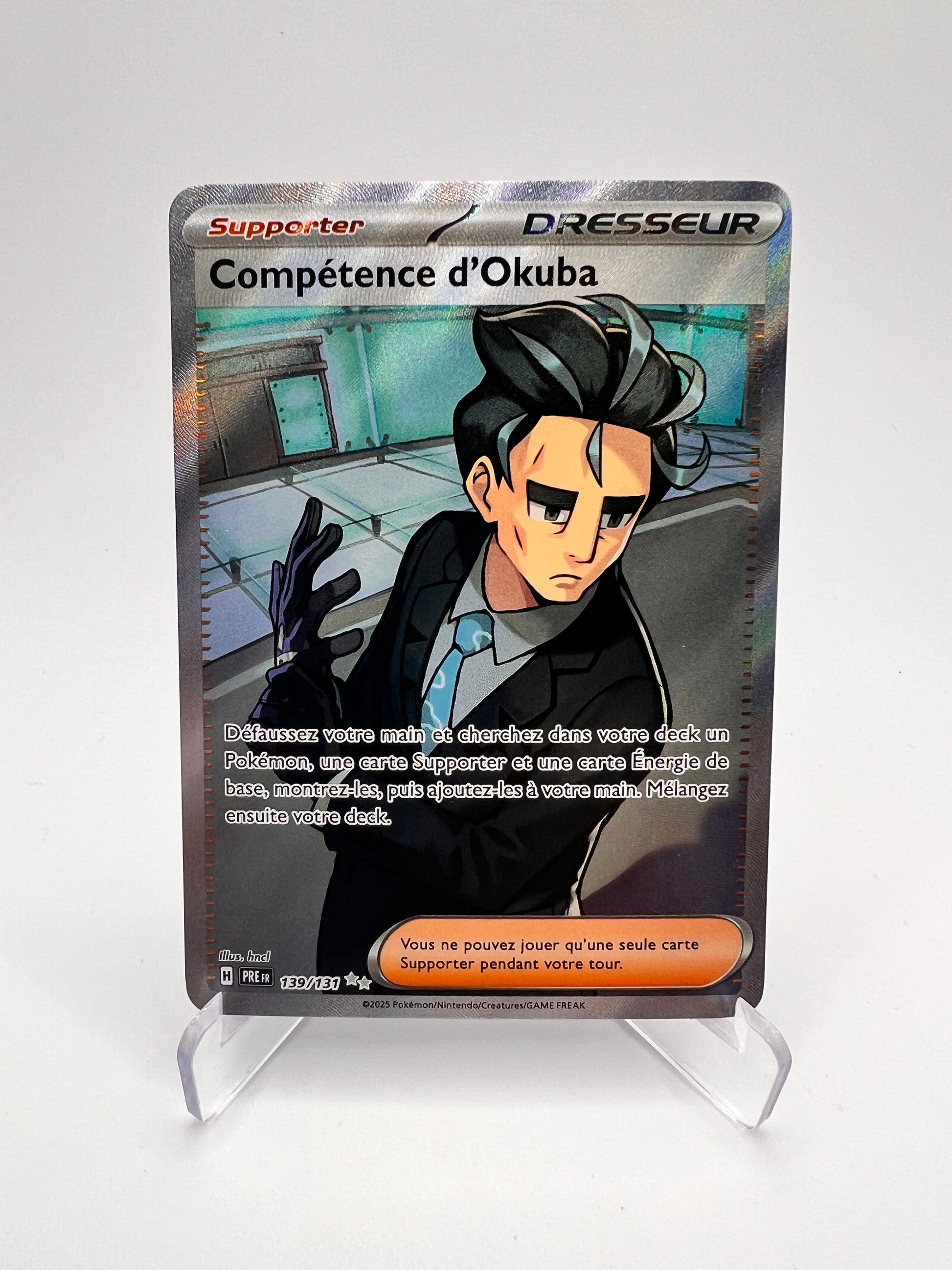 Compétence d’Okuba s’inscrit parmi les cartes Dresseur modernes les plus marquantes de l’ère Écarlate & Violet, appréciée pour son rôle stratégique et sa présence compétitive. Cette version Ultra Rare hors set se distingue par un visuel premium et un tirage plus limité. Une carte recherchée pour compléter un set Prismatique haut de gamme ou une collection orientée Dresseurs.