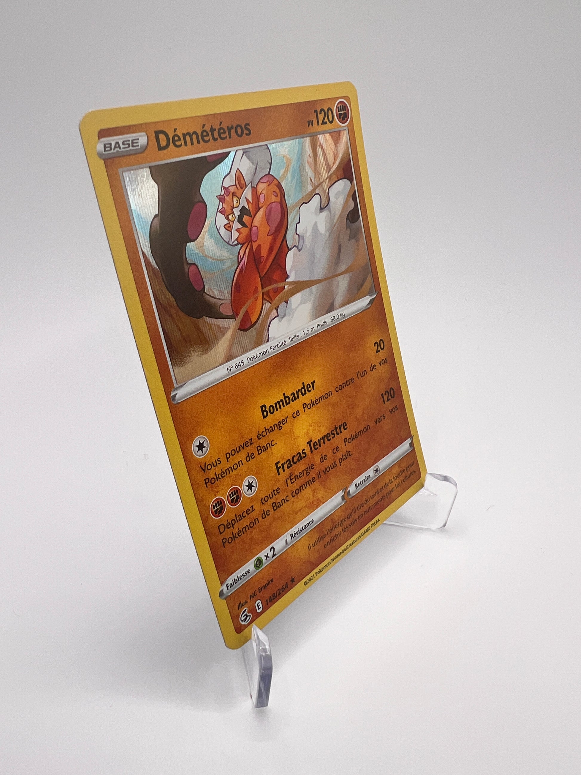 Faites souffler la tempête dans votre collection avec Démétéros 148/264 issu de l’extension Poing de Fusion. Ce Pokémon légendaire, maître des forces naturelles, est prêt à imposer sa puissance dans votre deck ou vitrine.