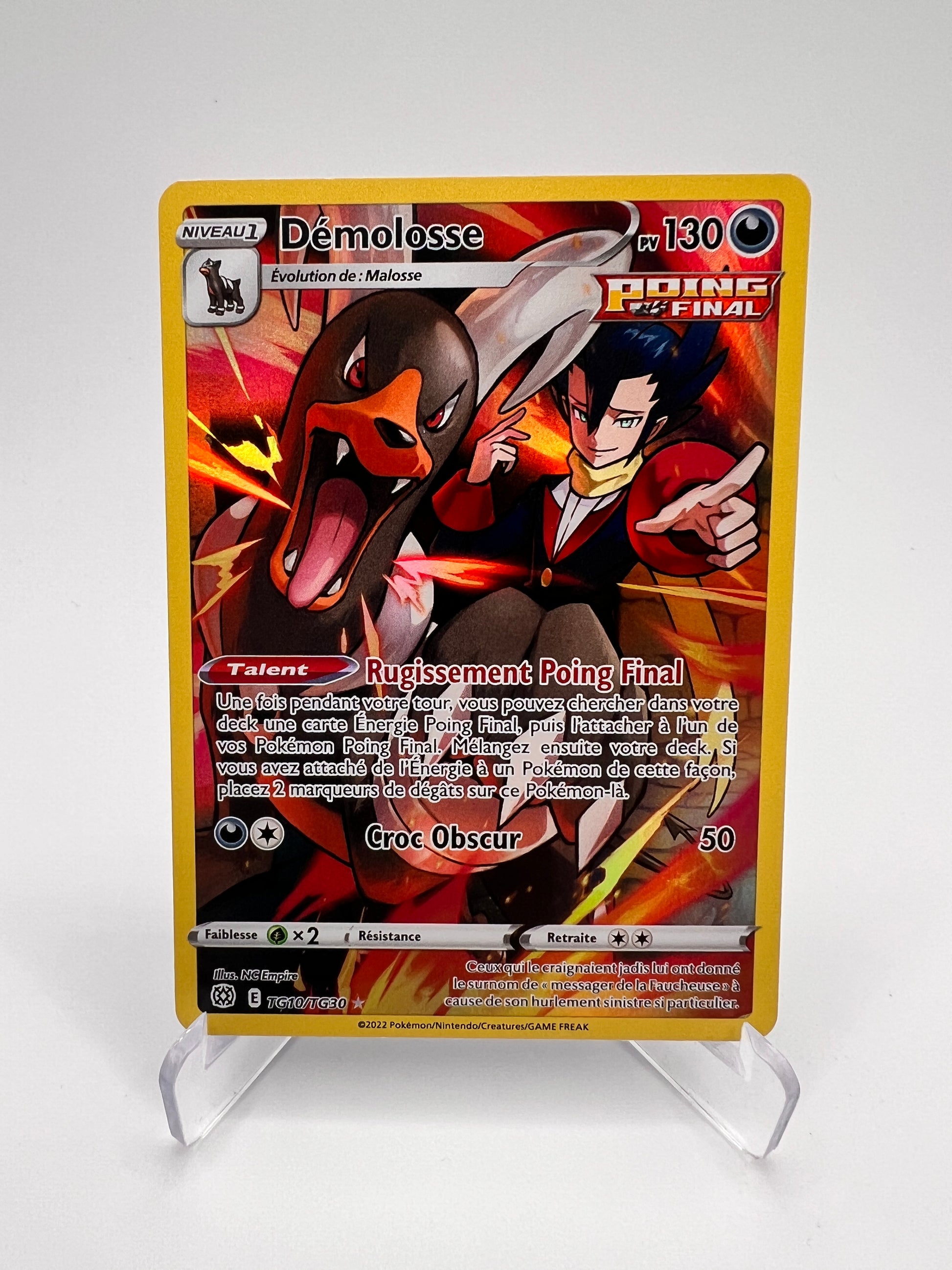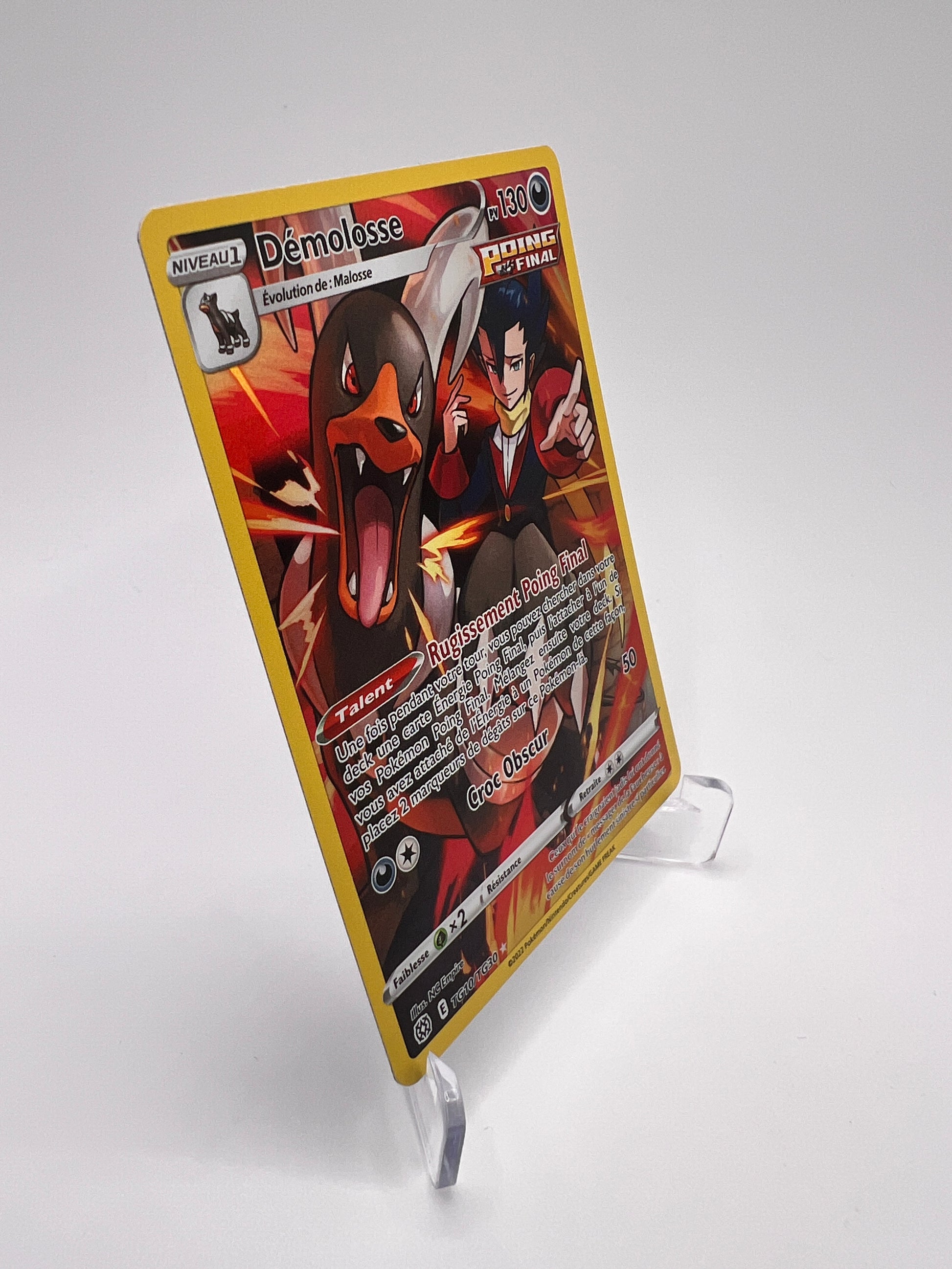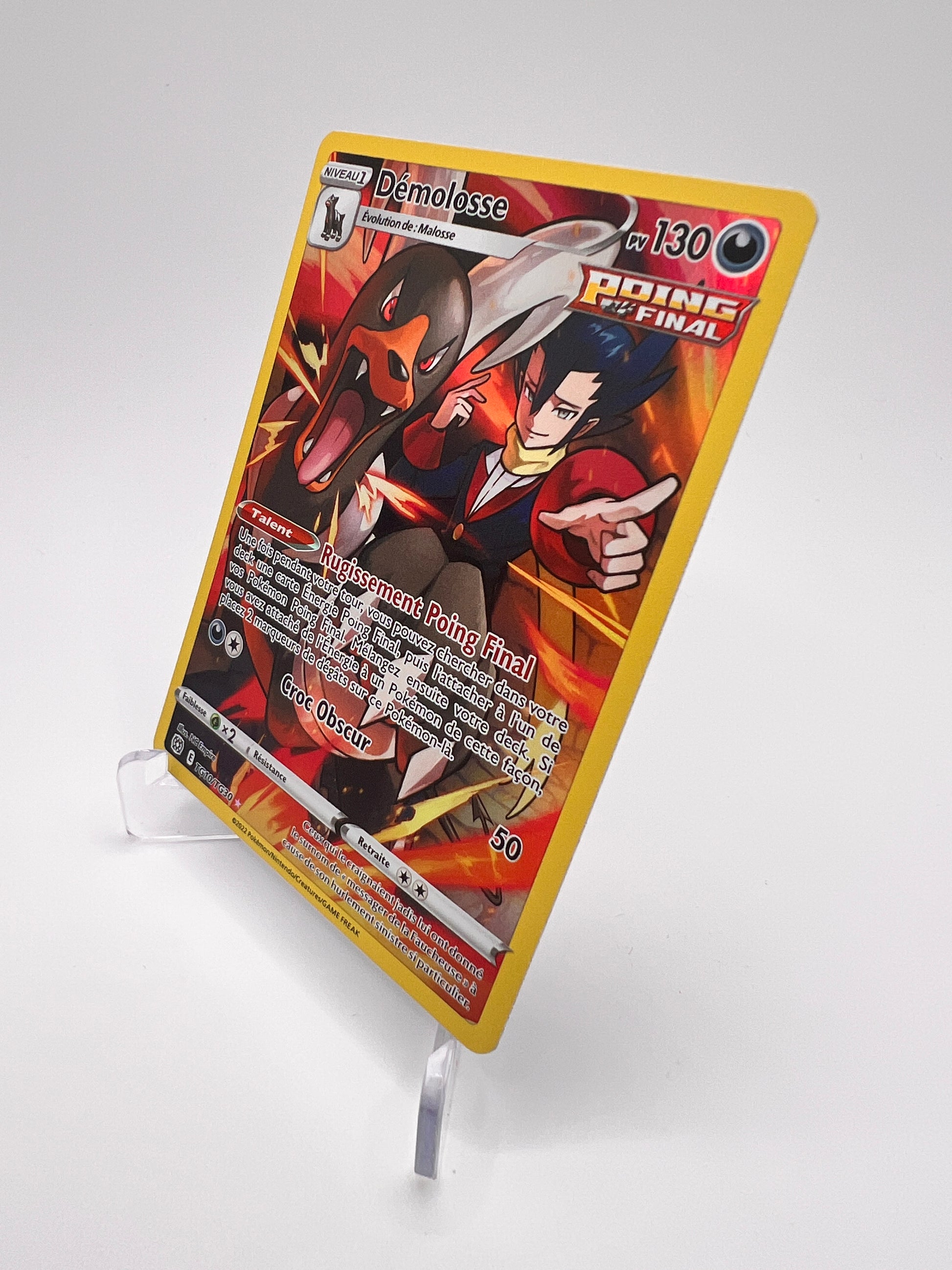 Démolosse est un Pokémon sombre et charismatique de la 2G, apprécié pour son design infernal et son tempérament redoutable. Cette version Trainer Gallery de Stars Étincelantes propose un artwork narratif très immersif, particulièrement apprécié par les collectionneurs EB. Une carte TG élégante qui combine puissance visuelle et popularité du Pokémon.