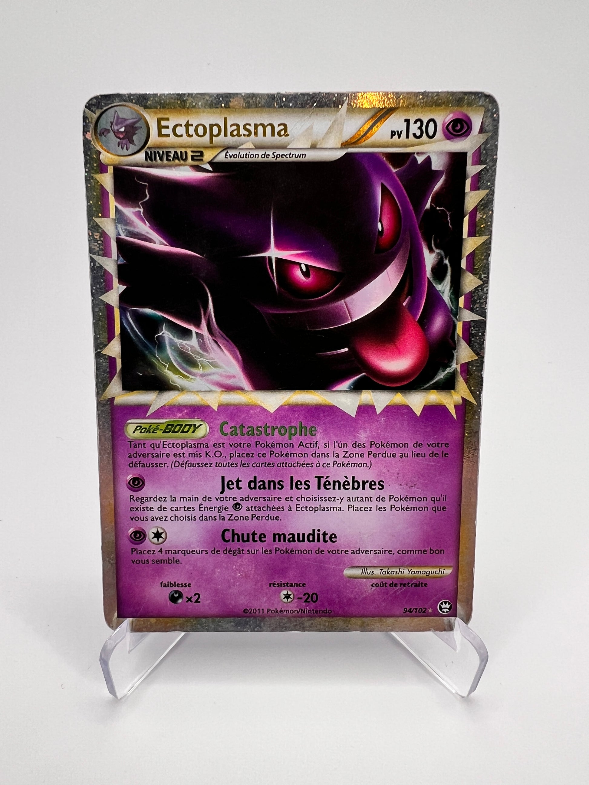 Issu de l’extension Triomphe (HGSS – HeartGold SoulSilver), Ectoplasma 094/102 revient dans une version sombre et stratégique, fidèle à sa réputation. Cette carte au style classique évoque la nostalgie des duels d’antan tout en restant très appréciée des collectionneurs de la série HeartGold. 💫🔮