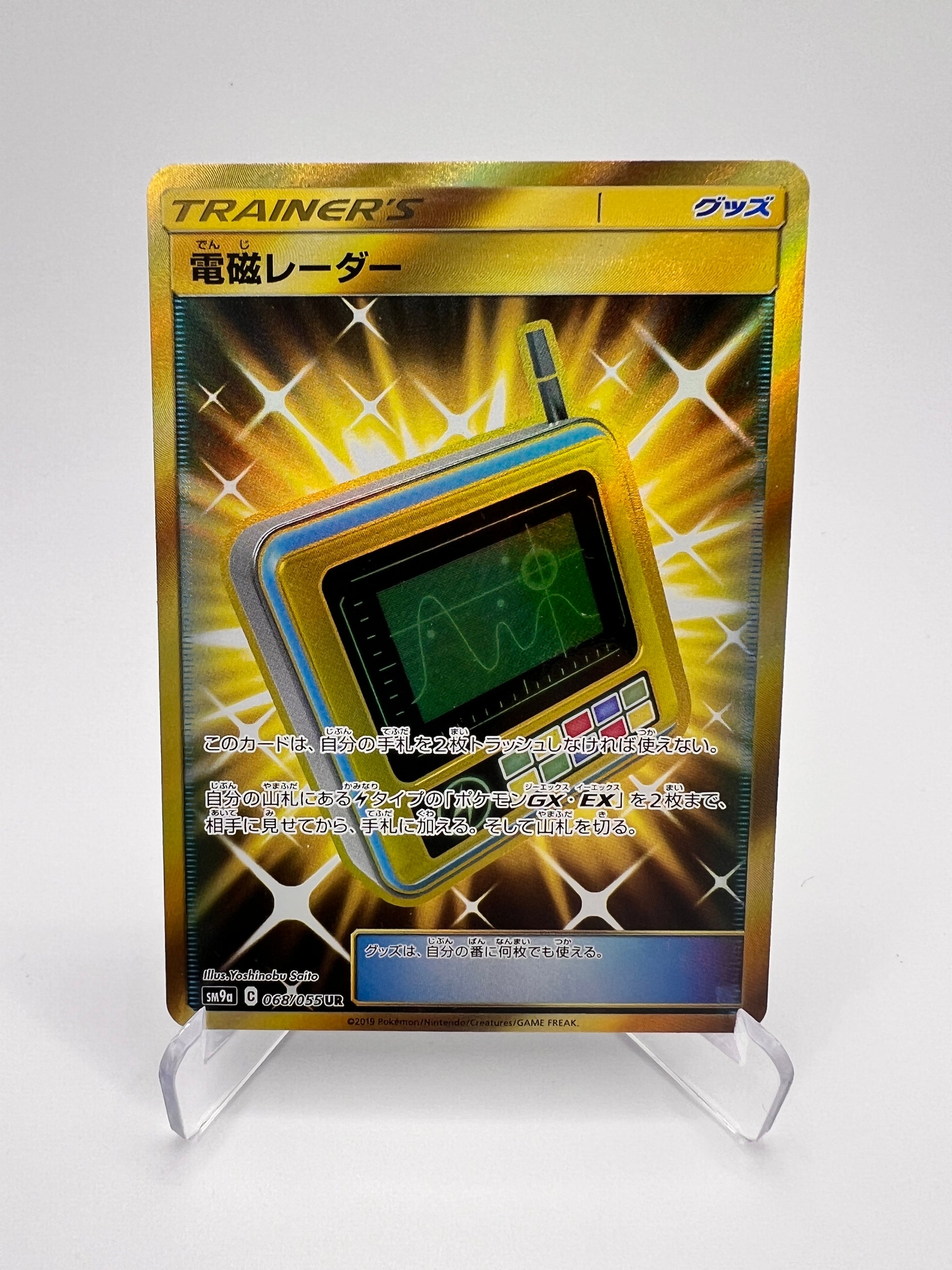 Découvrez Electromagnetic Radar (sm9a 068), une carte japonaise issue de l’extension sm9a, en état Near Mint. Cette carte Dresseur – Objet, essentielle pour les stratégies basées sur les Pokémon Électrik, permet une recherche optimisée dans votre deck pour maximiser vos combinaisons en combat.