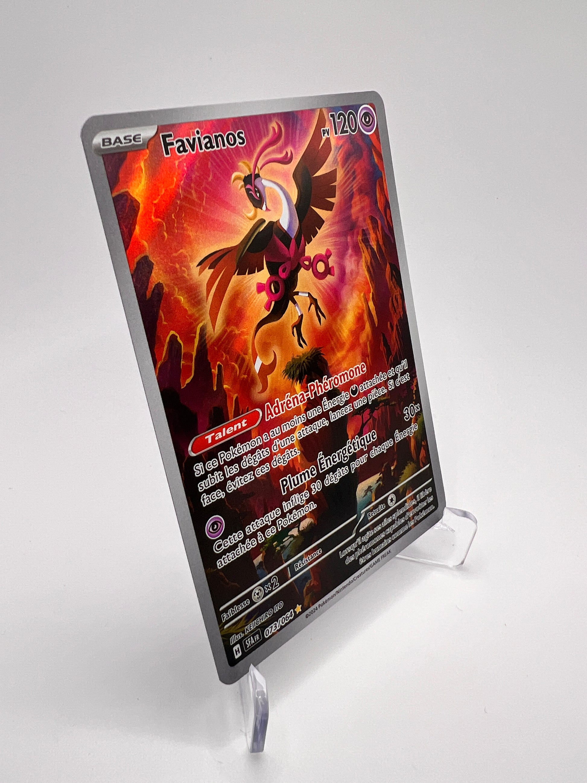Laisse la légende prendre forme avec Favianos, carte secrète n°073/064 issue de la poétique extension Fable Nébuleuse. Ce Pokémon mystérieux au design envoûtant incarne la beauté des étoiles et la puissance cosmique. Une carte rare et élégante, parfaite pour enrichir une collection haut de gamme ou pour briller en vitrine 🌟🌌