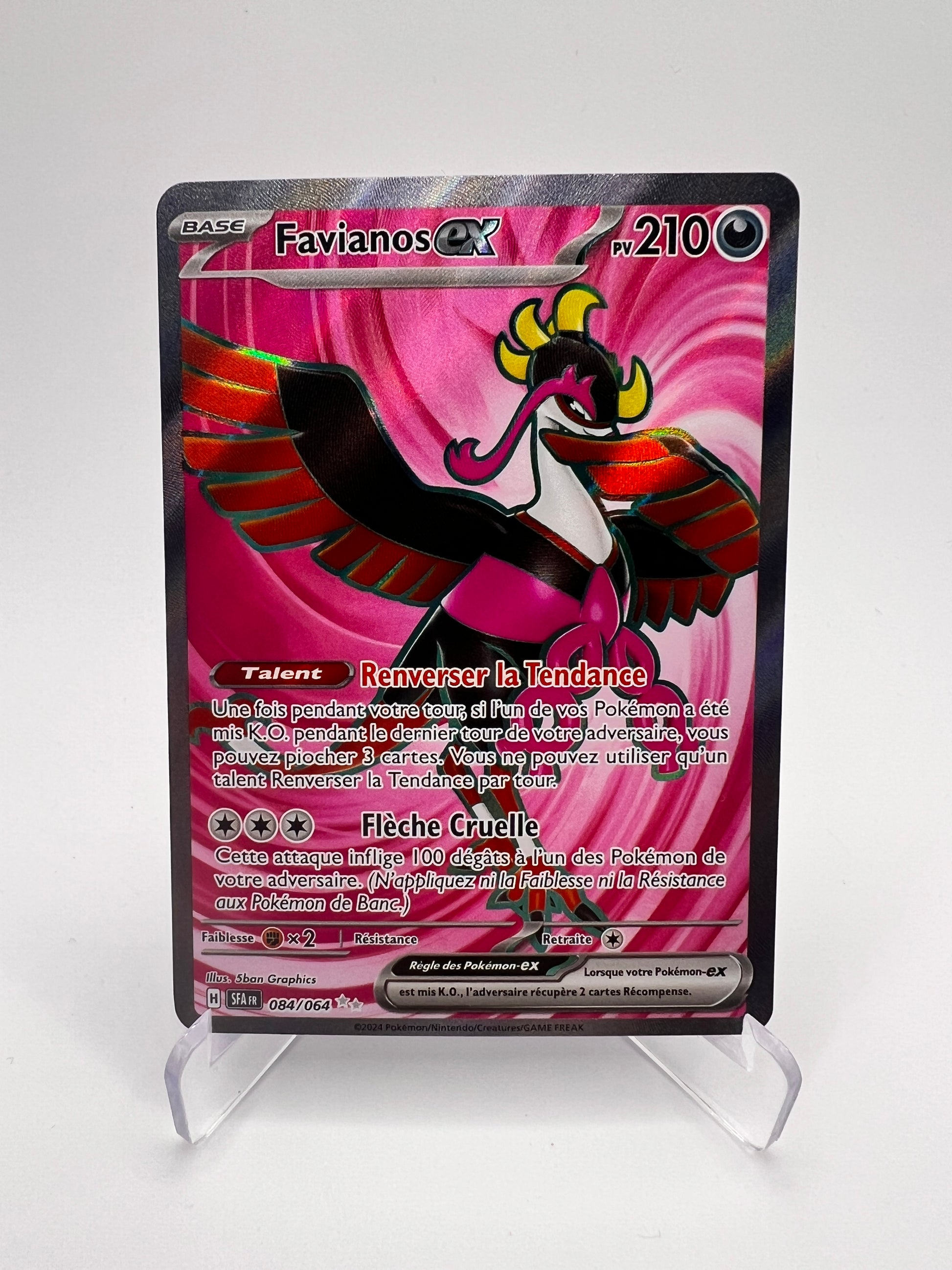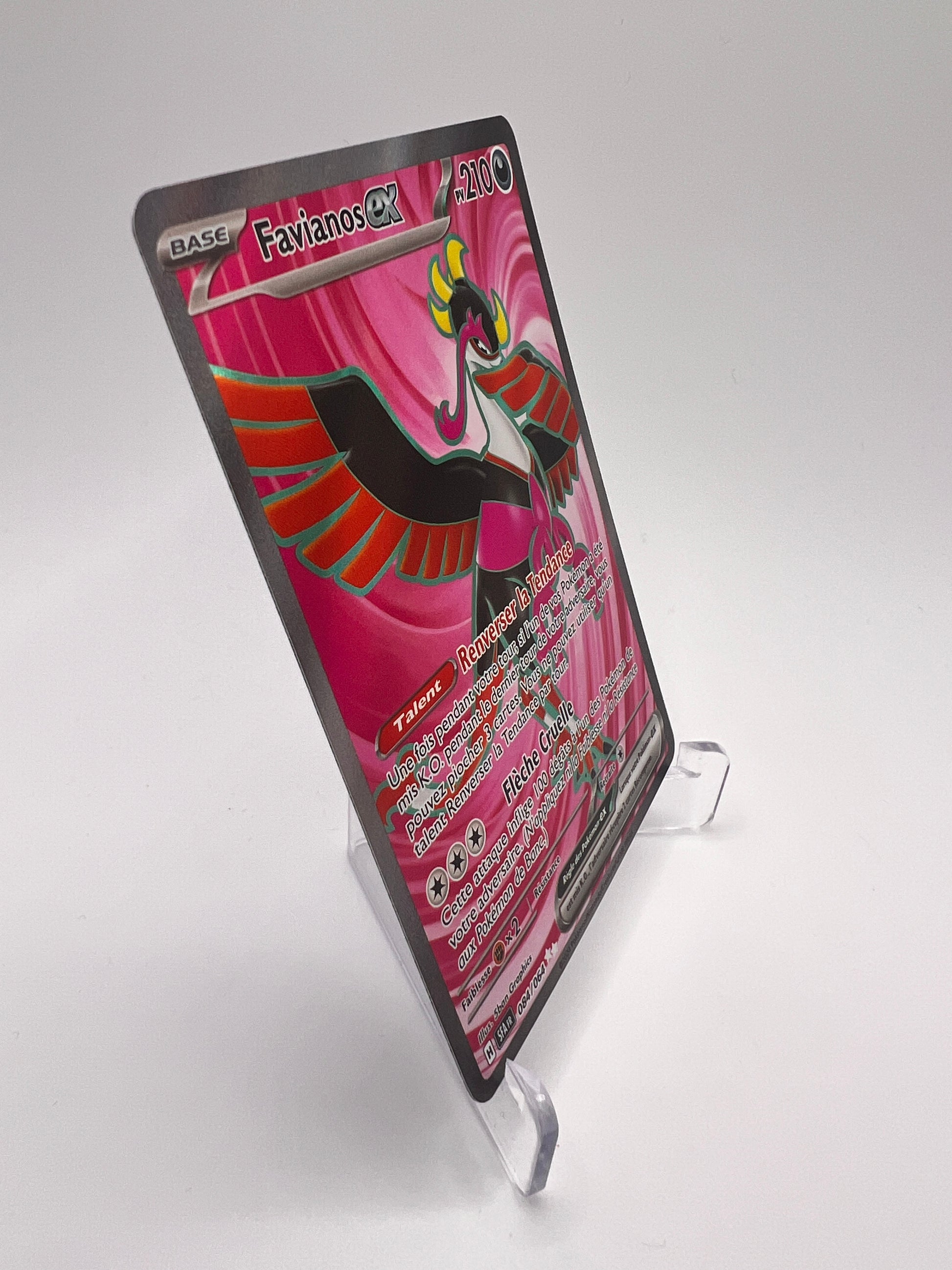 Avec son illustration majestueuse et son potentiel stratégique en combat, Favianos 084/064 est une carte recherchée pour enrichir une collection Pokémon ou optimiser un deck compétitif. Son état Near Mint garantit une excellente qualité, préservant ainsi toute sa valeur et son éclat.