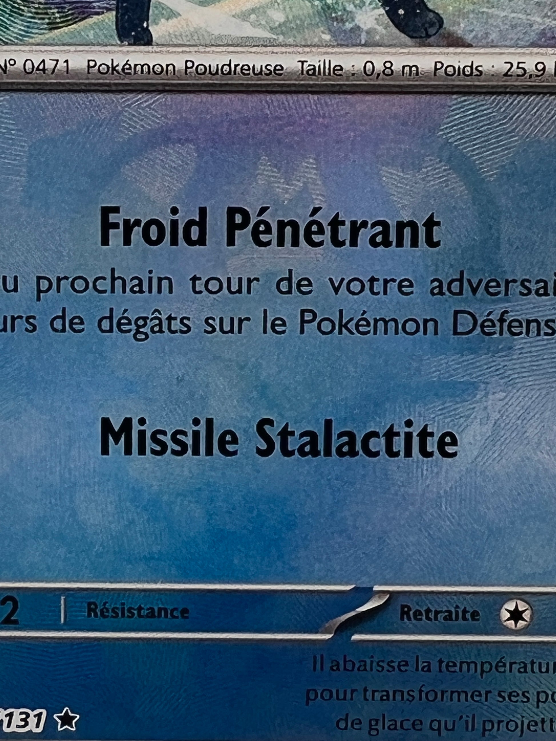Découvrez Givrali 025/131 (Master Ball), une carte issue de l’extension Évolutions Prismatiques, en état Near Mint. Ce Pokémon de type Glace se distingue par sa version spéciale Master Ball, offrant une exclusivité supplémentaire à son design déjà captivant.