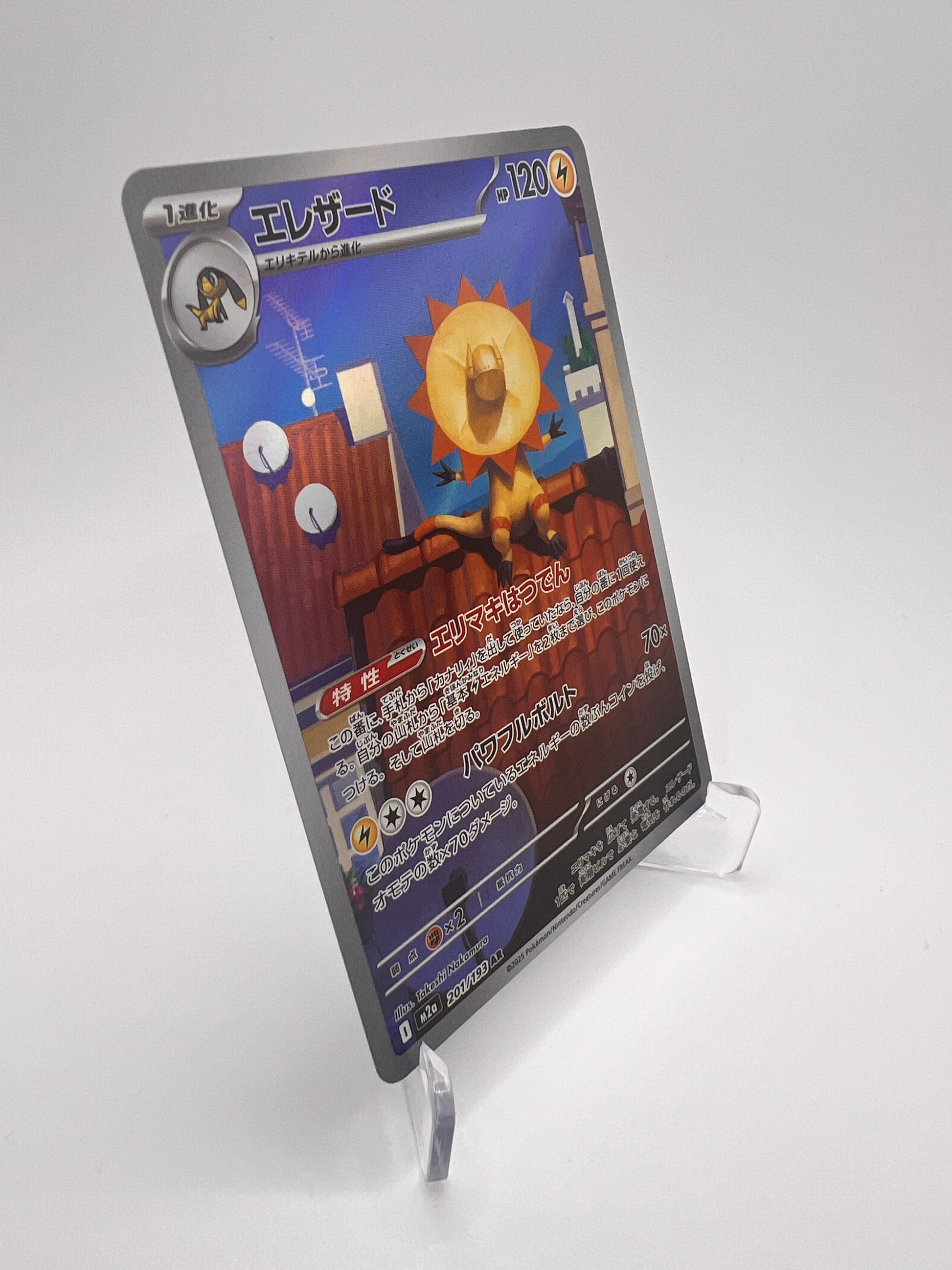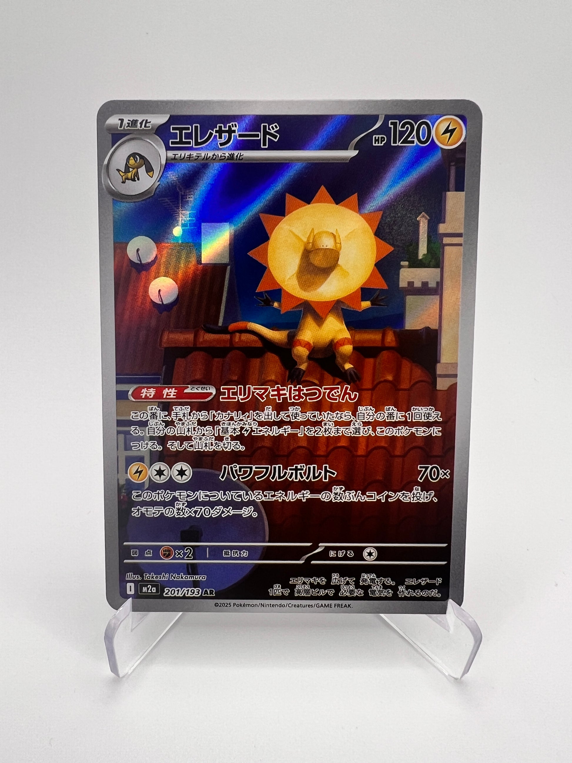 Découvrez Iguolta M2A-201, une carte secrète japonaise issue de la série Méga Dream. Avec son style électrique et son illustration moderne, cette carte met en valeur Iguolta dans une pose dynamique caractéristique des Pokémon de type Électrik.