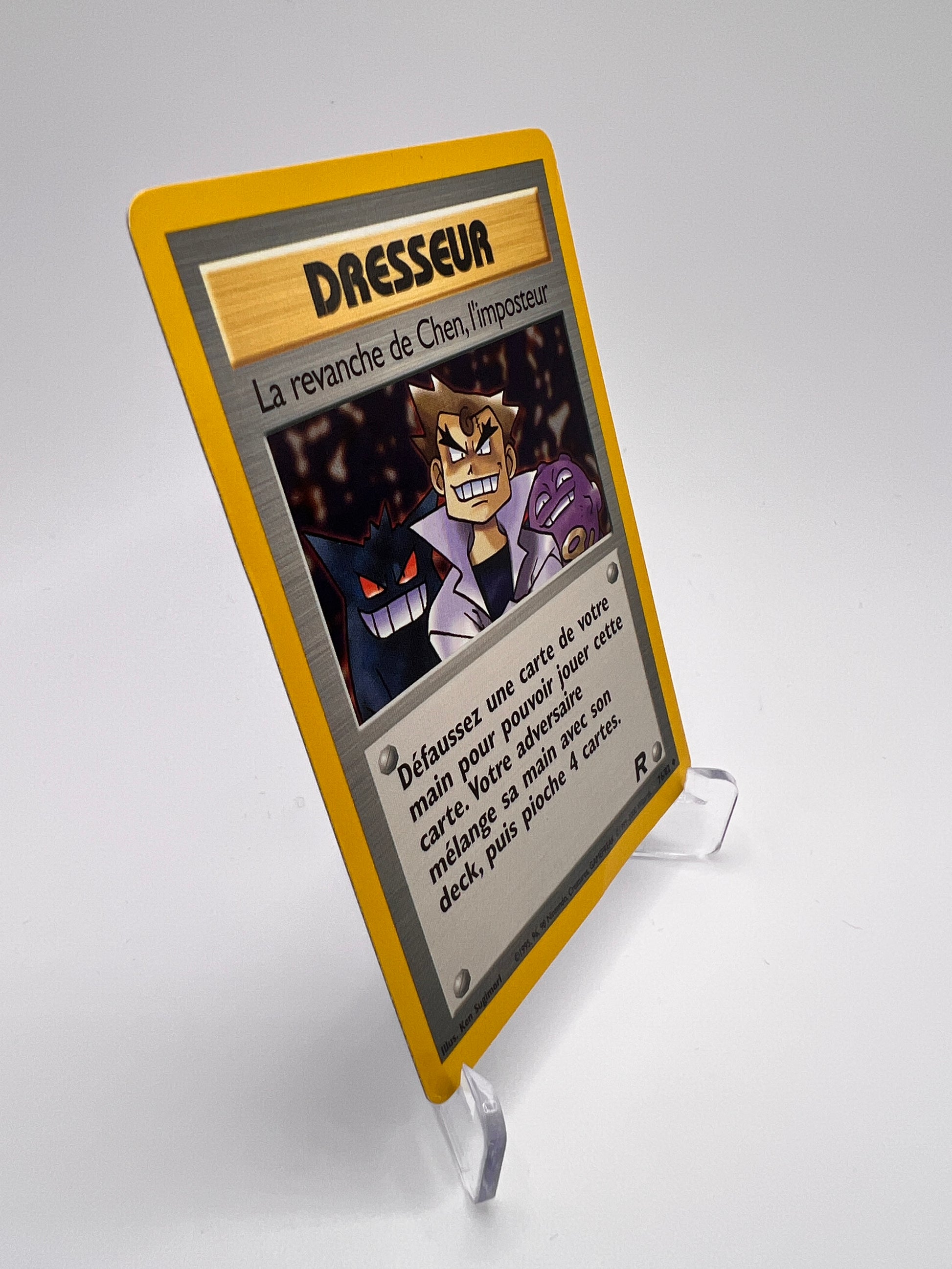 Une carte Dresseur culte de l’extension Team Rocket, représentant le professeur Chen dans sa version “obscure” 🧪😈. Parfaite pour compléter un set Rocket vintage, avec ce clin d’œil emblématique à l’humour des cartes Wizards of the Coast.