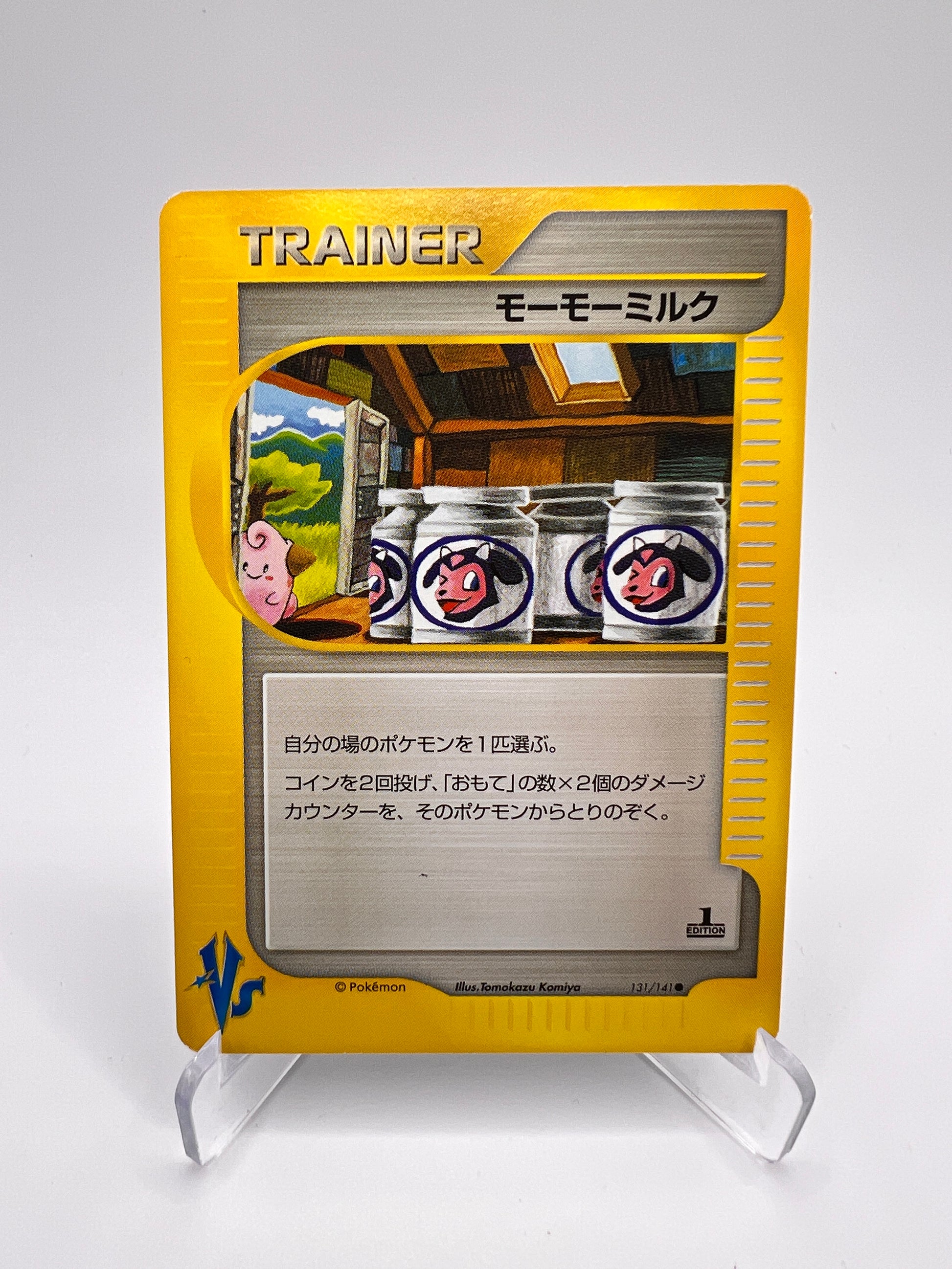 Lait Meumeu est un objet iconique de l’univers Pokémon, immédiatement reconnaissable par les joueurs comme par les collectionneurs. Dans le set Pokémon VS japonais, cette version Première Édition incarne parfaitement l’esthétique sobre et fonctionnelle du début des années 2000. Une carte commune, mais recherchée pour compléter un set VS authentique et cohérent.