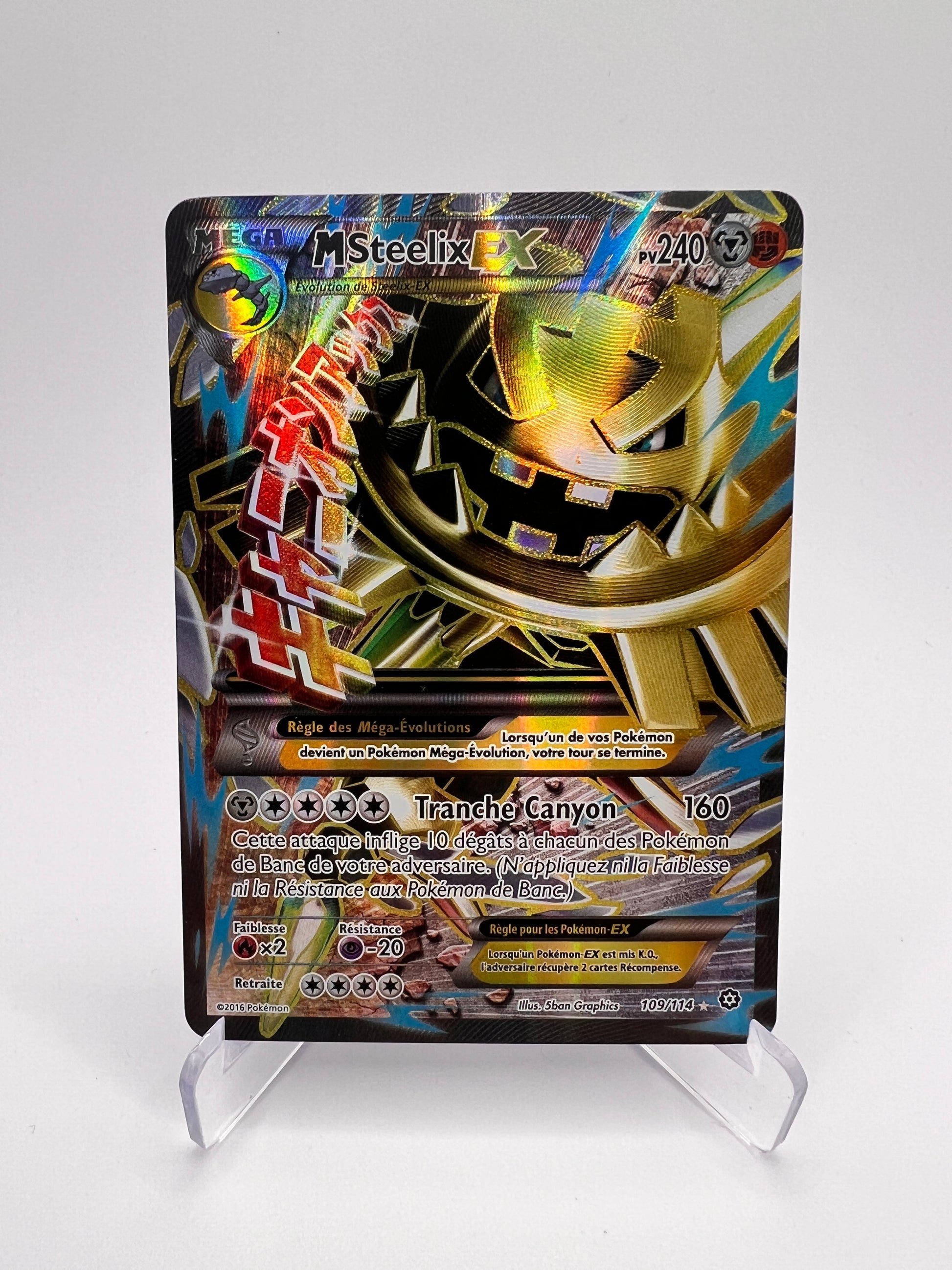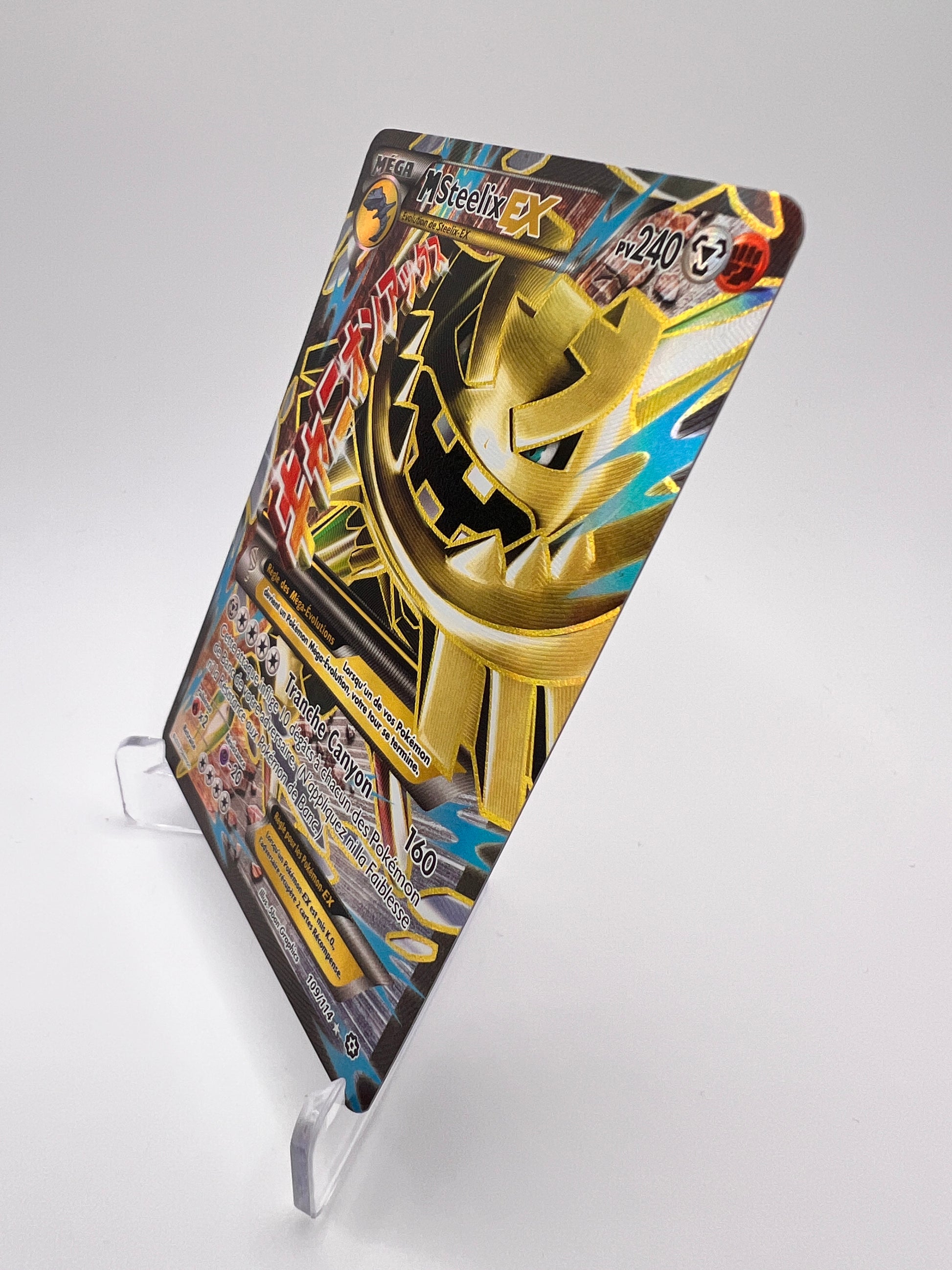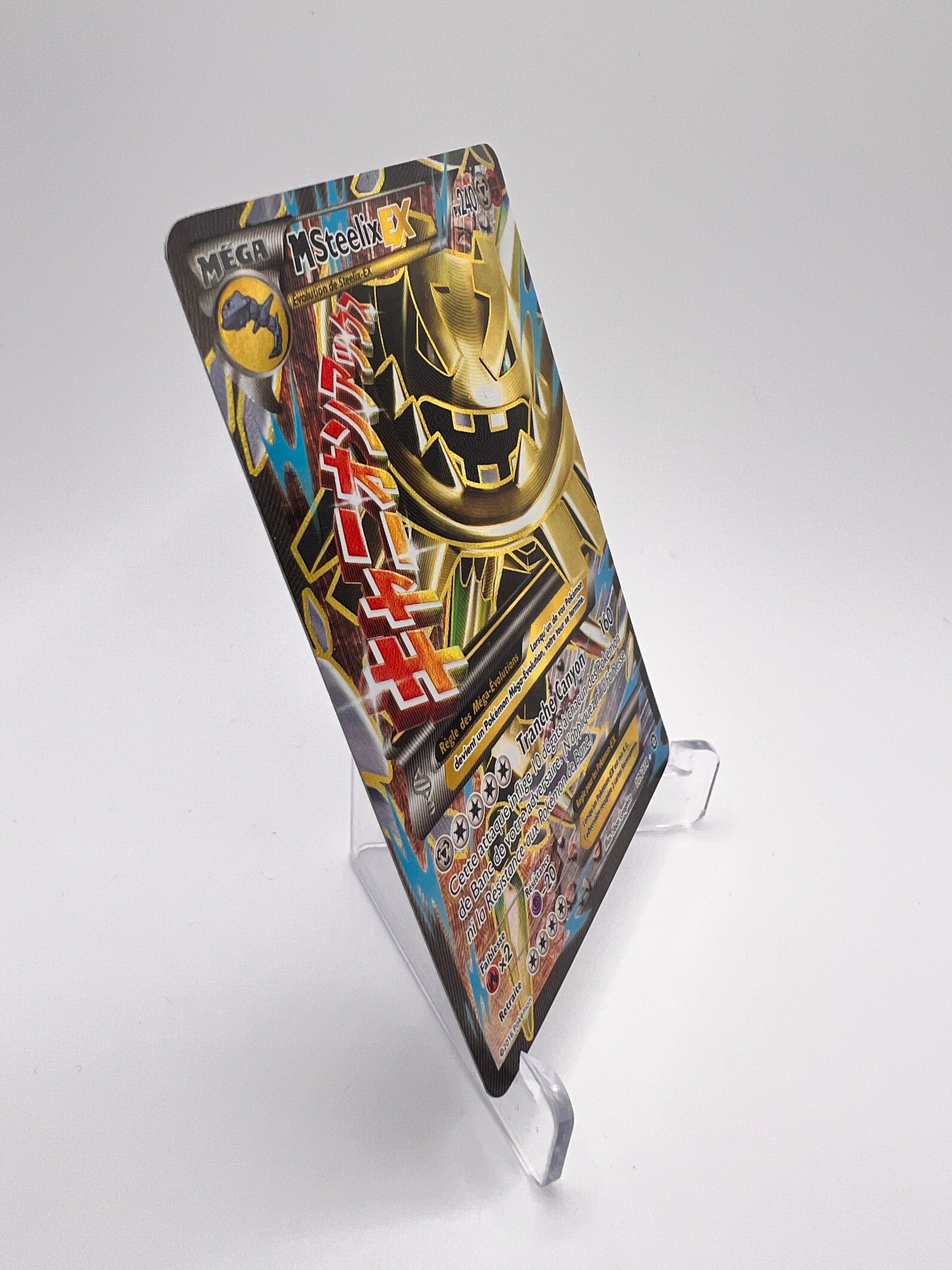 Méga EX qui impose le respect : Steelix en version Méga, full puissance, visuel massif. Parfait pour un binder Méga, une collection XY, ou compléter Offensive Vapeur avec une pièce qui claque.