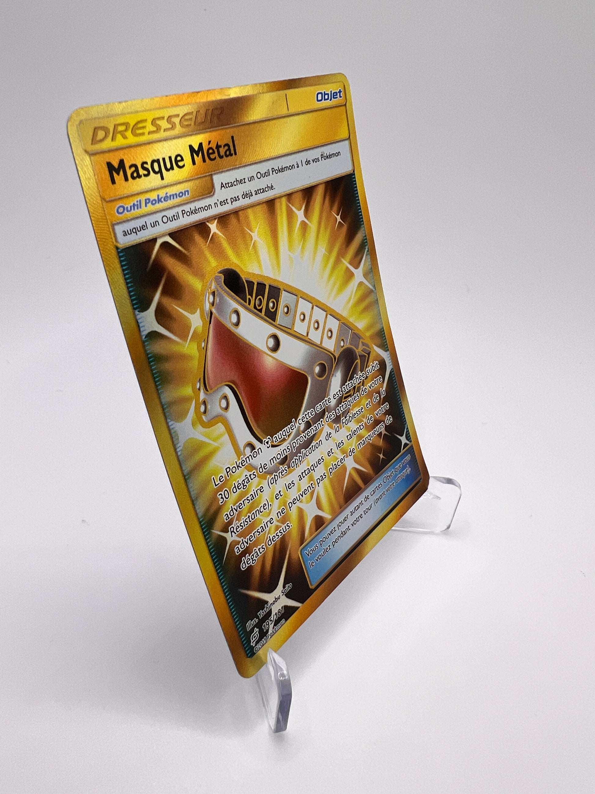 Voici Masque Métal 195/181, un objet stratégique issu de la série Team Up. Ce type d’équipement est apprécié des collectionneurs pour son rôle clé dans le JCC Pokémon, mais aussi pour son design sobre et métallique emblématique.