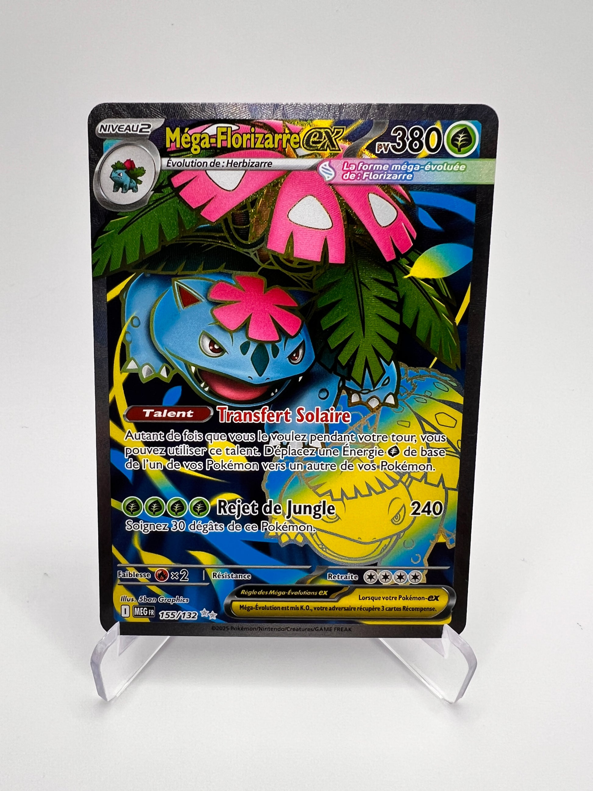 Méga-Florizarre EX se distingue par son visuel puissant et son statut recherché, idéal pour compléter un classeur premium.