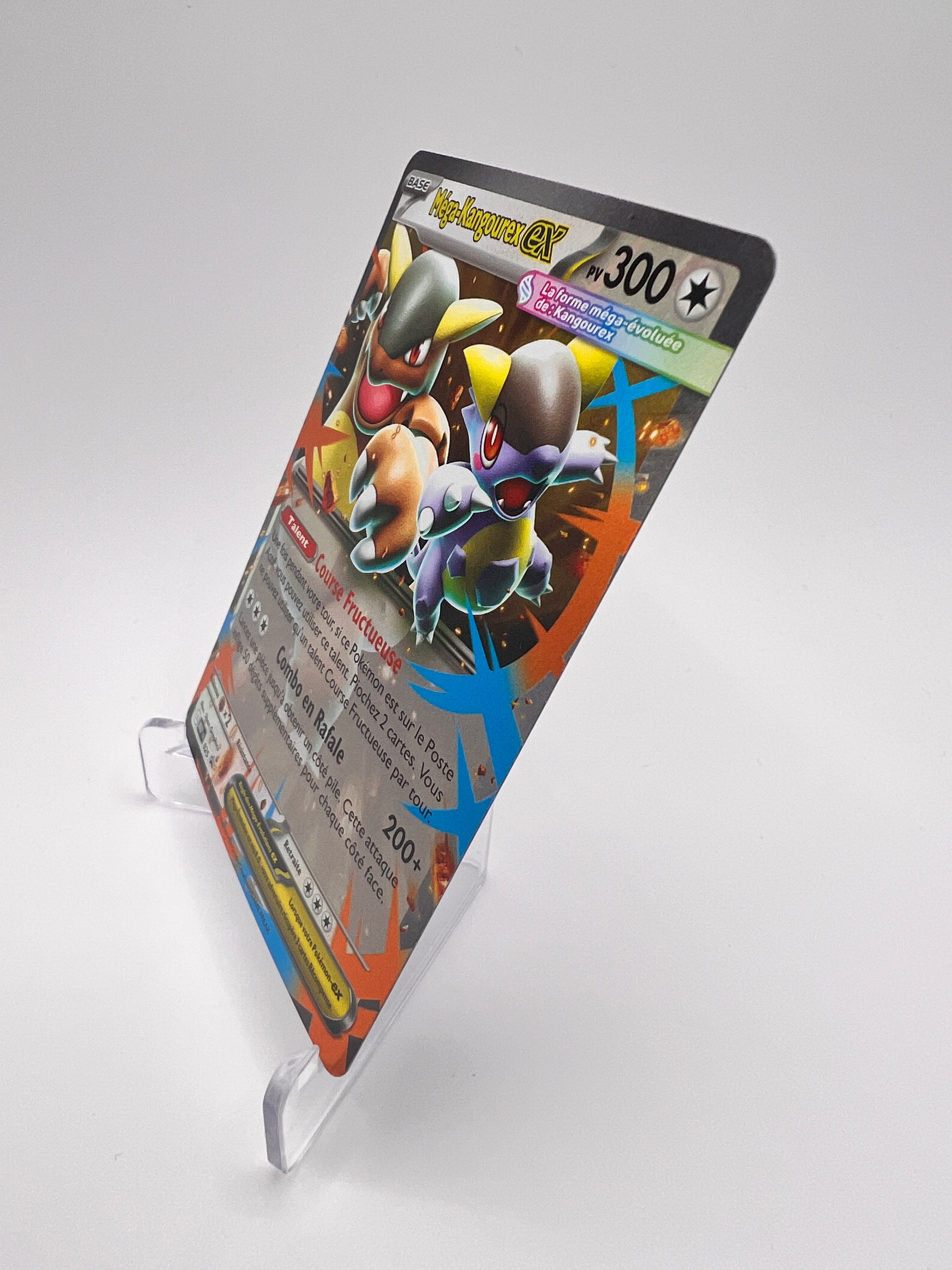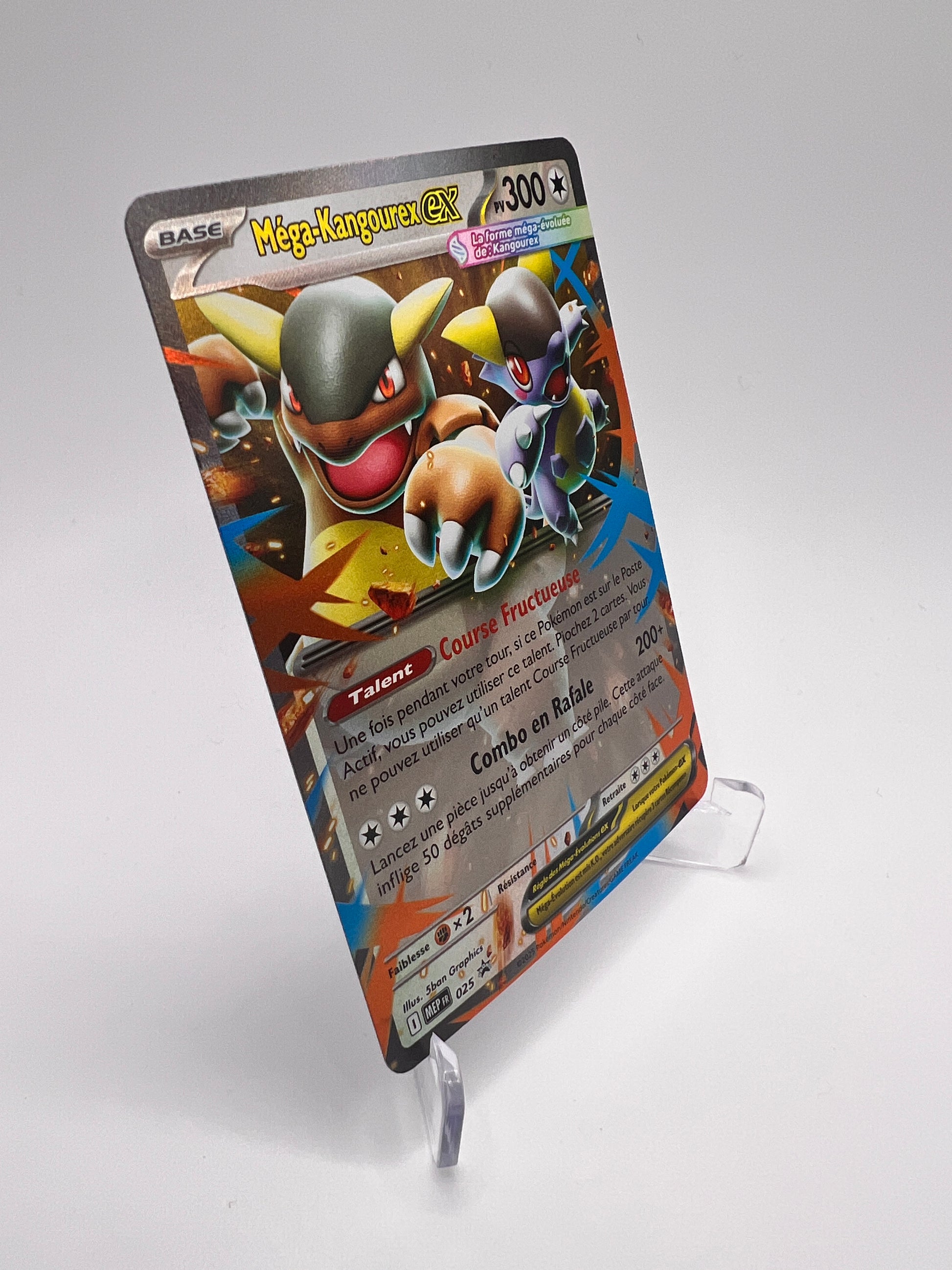 Carte promotionnelle marquante de l’ère XY, Méga-Kangourex EX 025 fait partie des Black Star Promos distribuées hors boosters. Elle incarne l’introduction des Méga-Évolutions, une mécanique emblématique qui a profondément marqué le jeu et le collectionnisme Pokémon par sa puissance et son design distinctif.