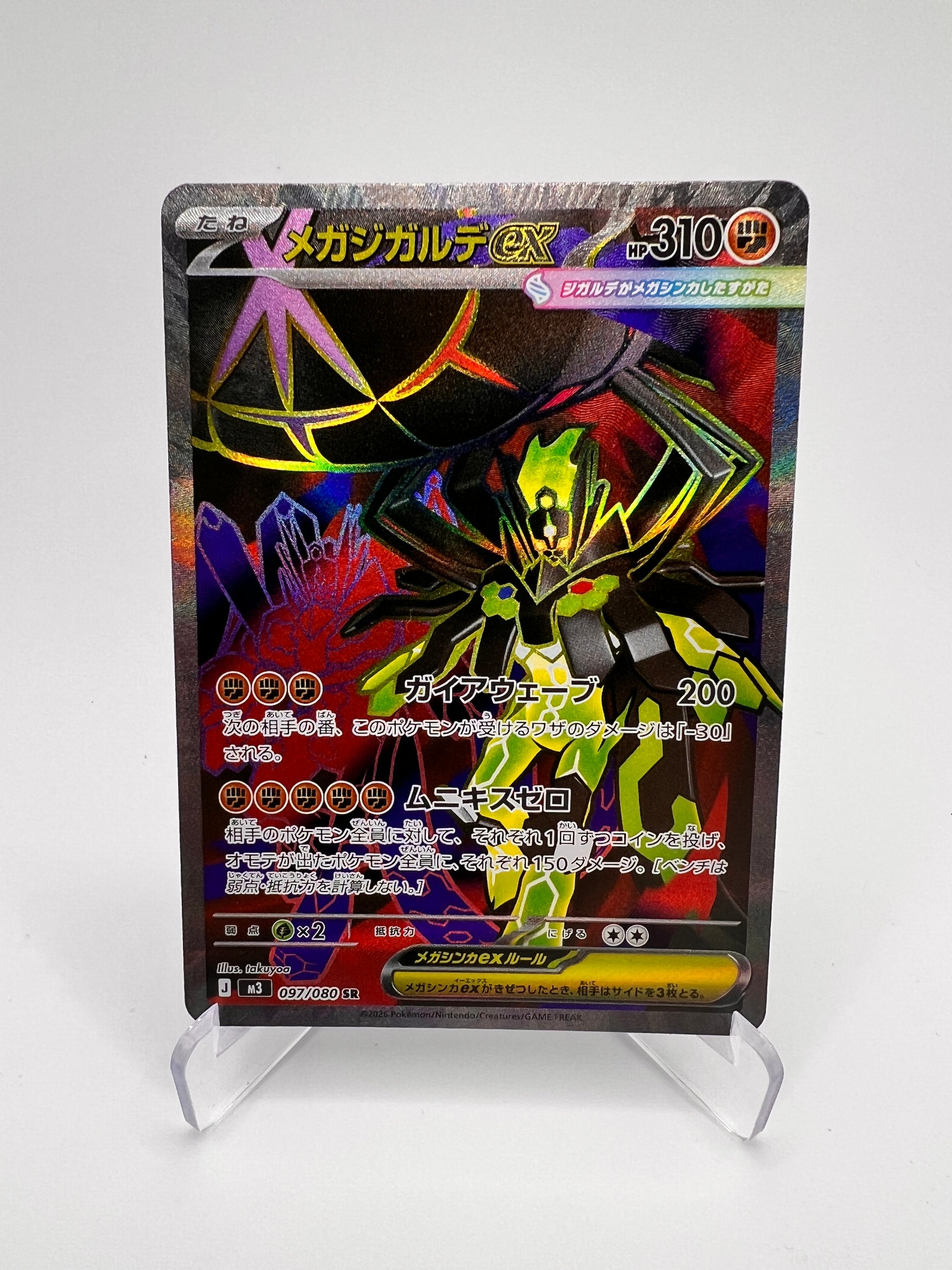 Zygarde incarne l’équilibre et l’ordre du monde Pokémon, avec une identité visuelle puissante en Méga ex. Cette version SR japonaise est recherchée pour son rendu premium et son positionnement haut de gamme dans les sorties M3. Une carte à fort impact visuel, prisée des collectionneurs de formats ex et des éditions japonaises.