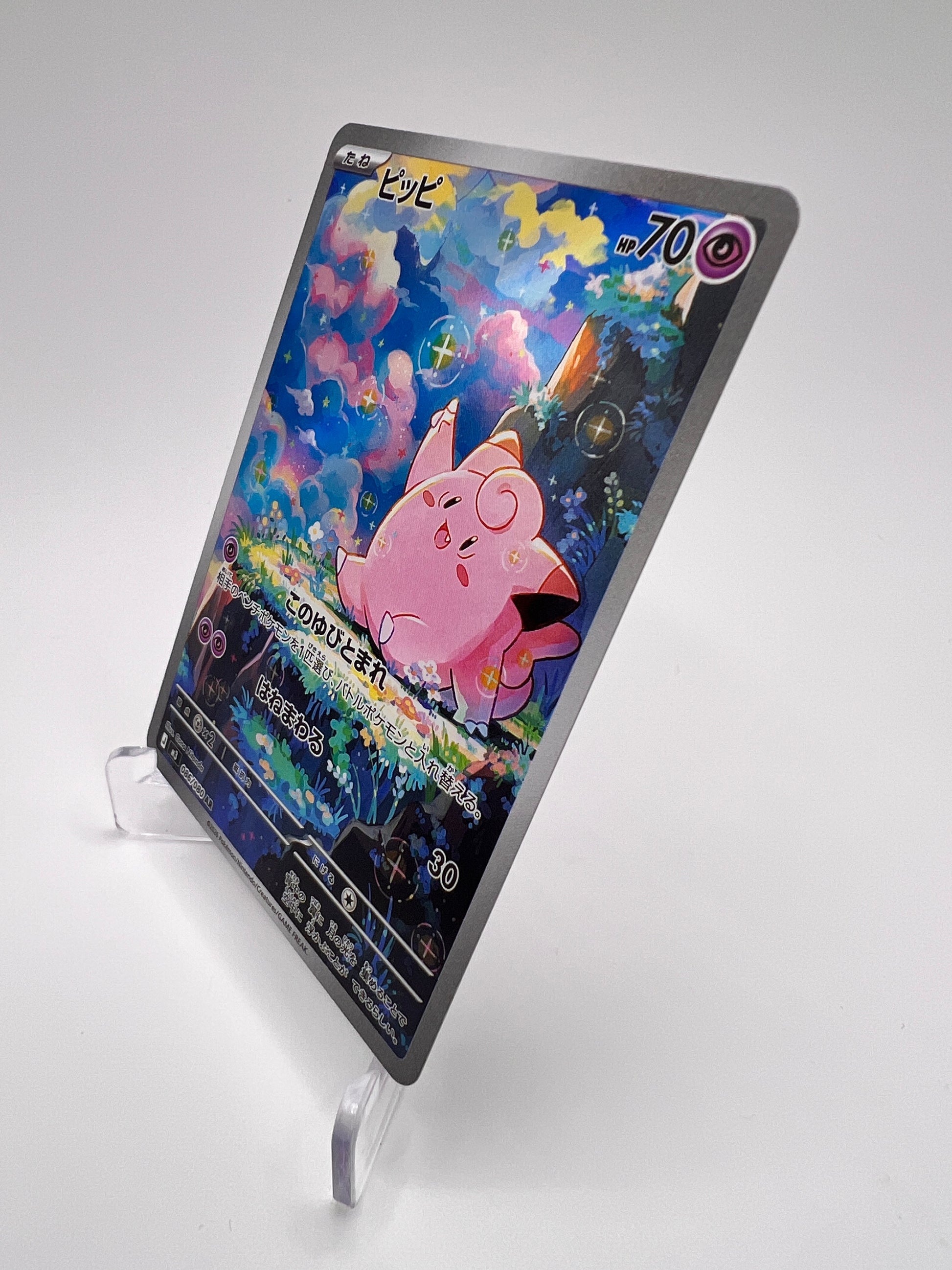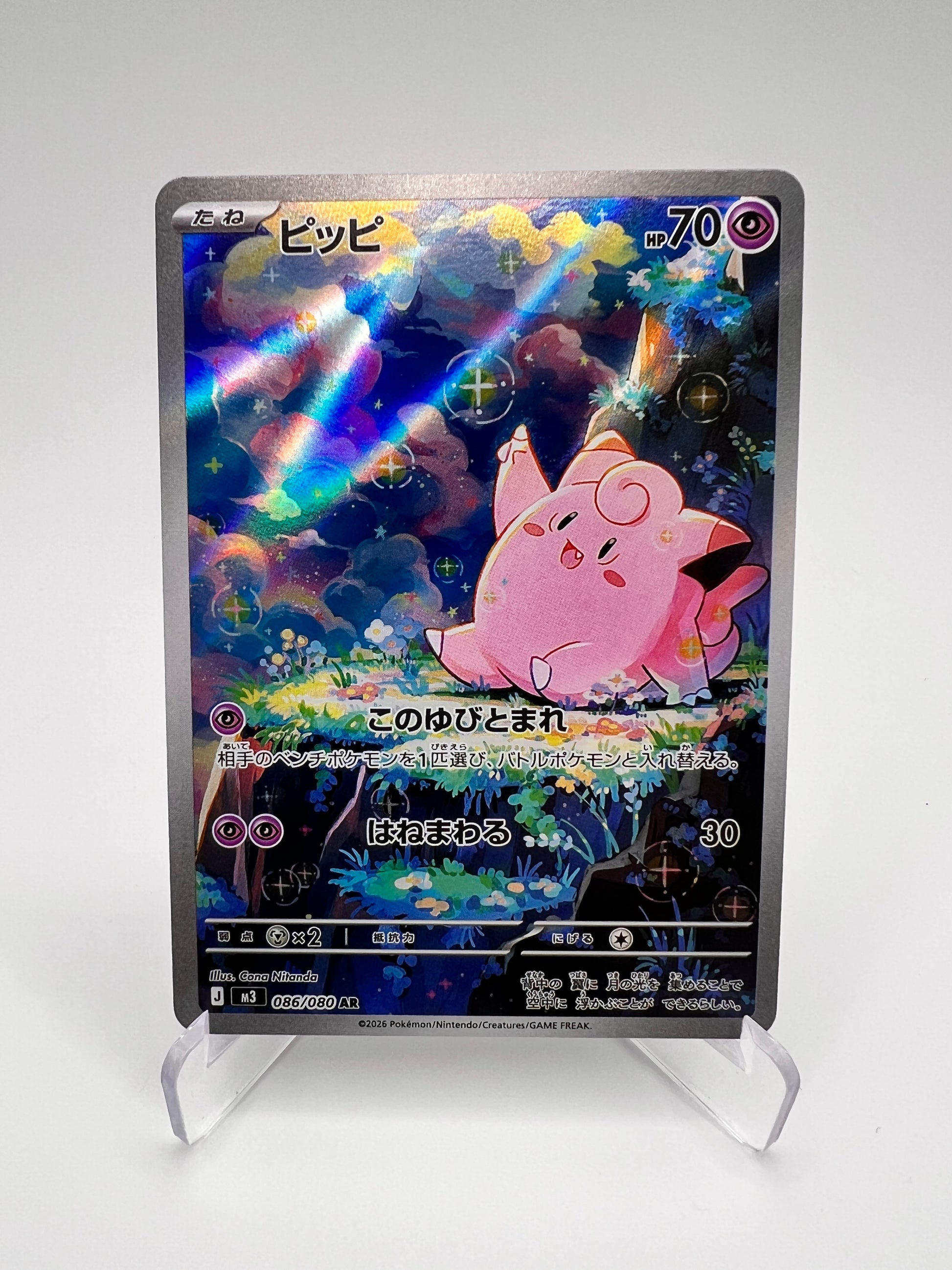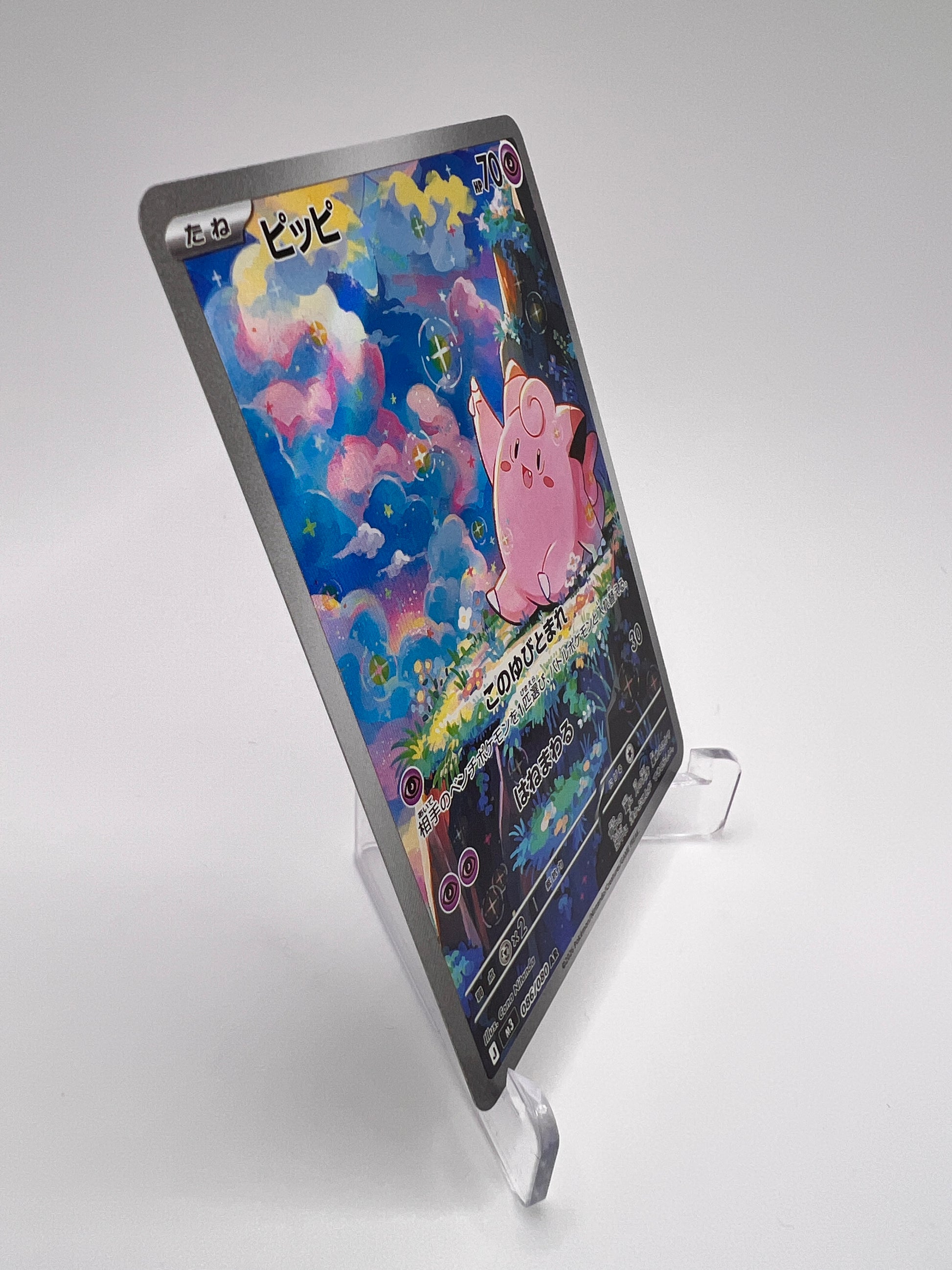 Mélofée est l’un des Pokémon féeriques les plus emblématiques, associé à la lune et à une aura mystérieuse depuis la 1G. Cette Illustration Rare japonaise de la série Nihil Zero se distingue par un artwork doux et immersif, très recherché dans le bloc Méga. Une pièce AR à fort capital nostalgie pour une collection japonaise premium.