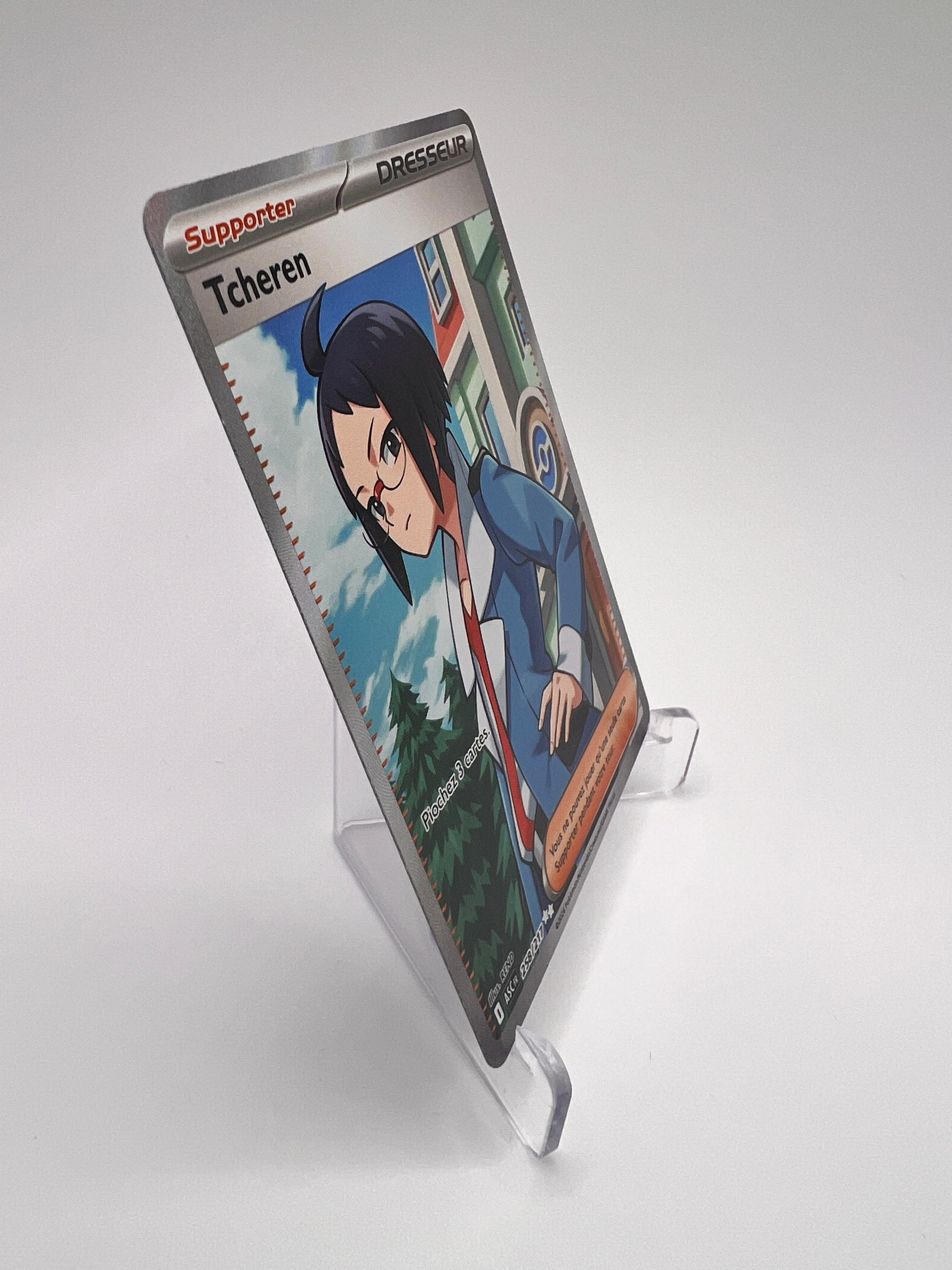 Tcheren est une figure emblématique d’Unys, reconnu pour son évolution stratégique et son rôle marquant dans l’histoire. Cette version Full Art hors set met en avant un artwork premium centré sur le personnage, très recherché par les collectionneurs EV. Une carte Dresseur Ultra Rare à forte présence visuelle, idéale pour compléter une collection moderne haut de gamme.