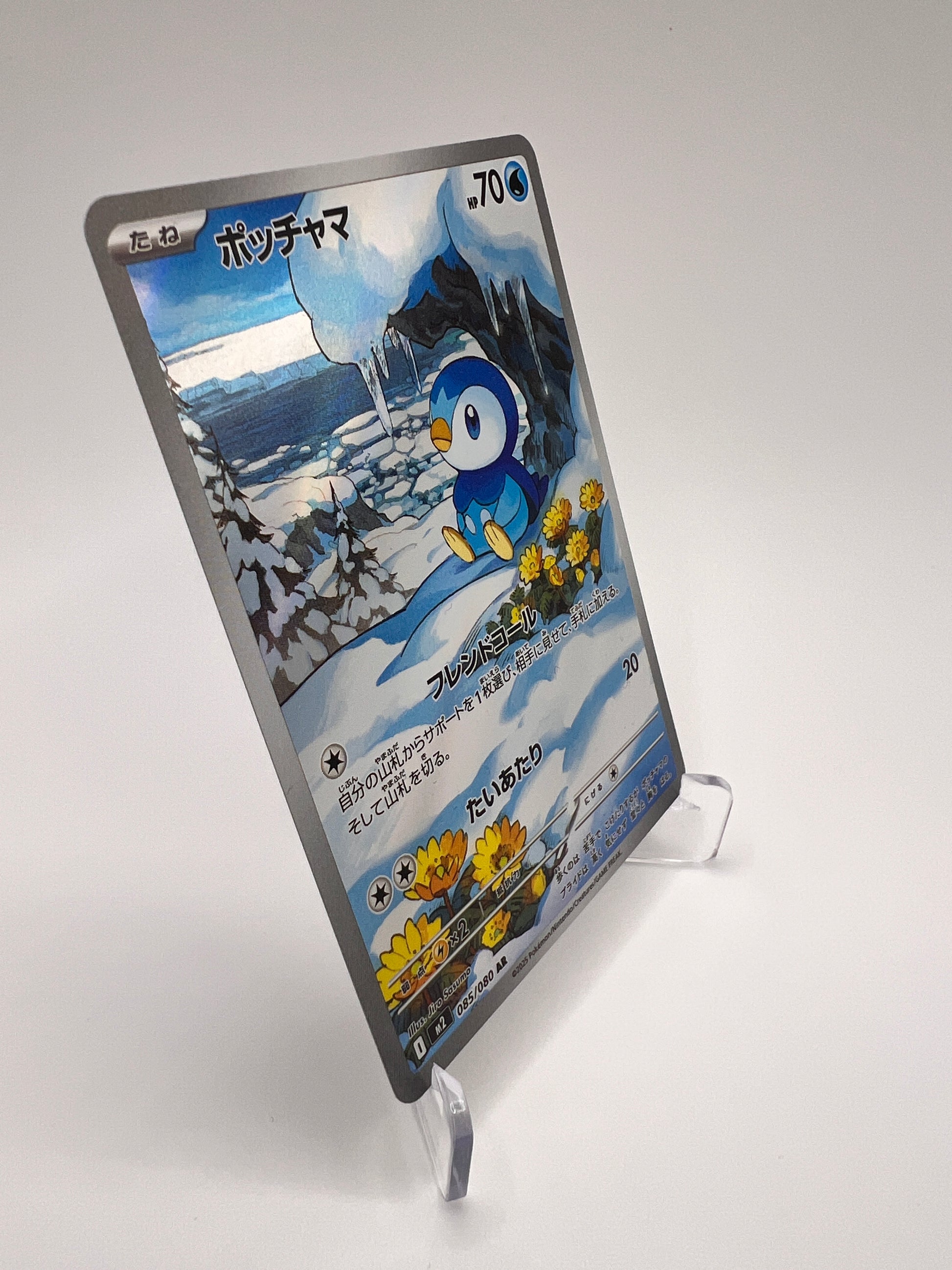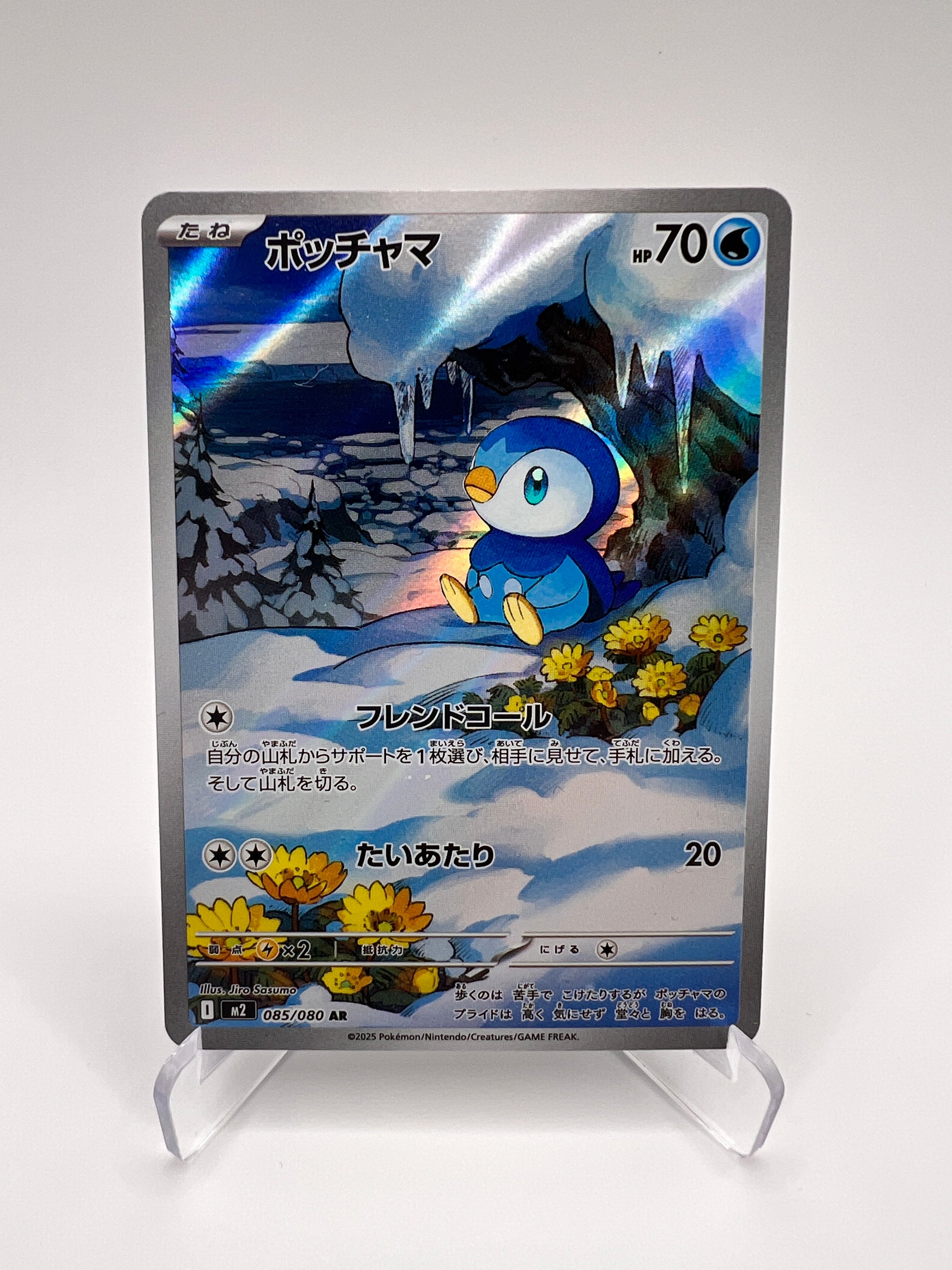Tiplouf est l’un des starters emblématiques de la région de Sinnoh et un Pokémon très apprécié pour son caractère fier et déterminé. Cette version Illustration Rare japonaise propose un artwork immersif et détaillé, typique des cartes modernes très recherchées par les collectionneurs. Une carte AR charmante qui met en valeur ce Pokémon populaire.