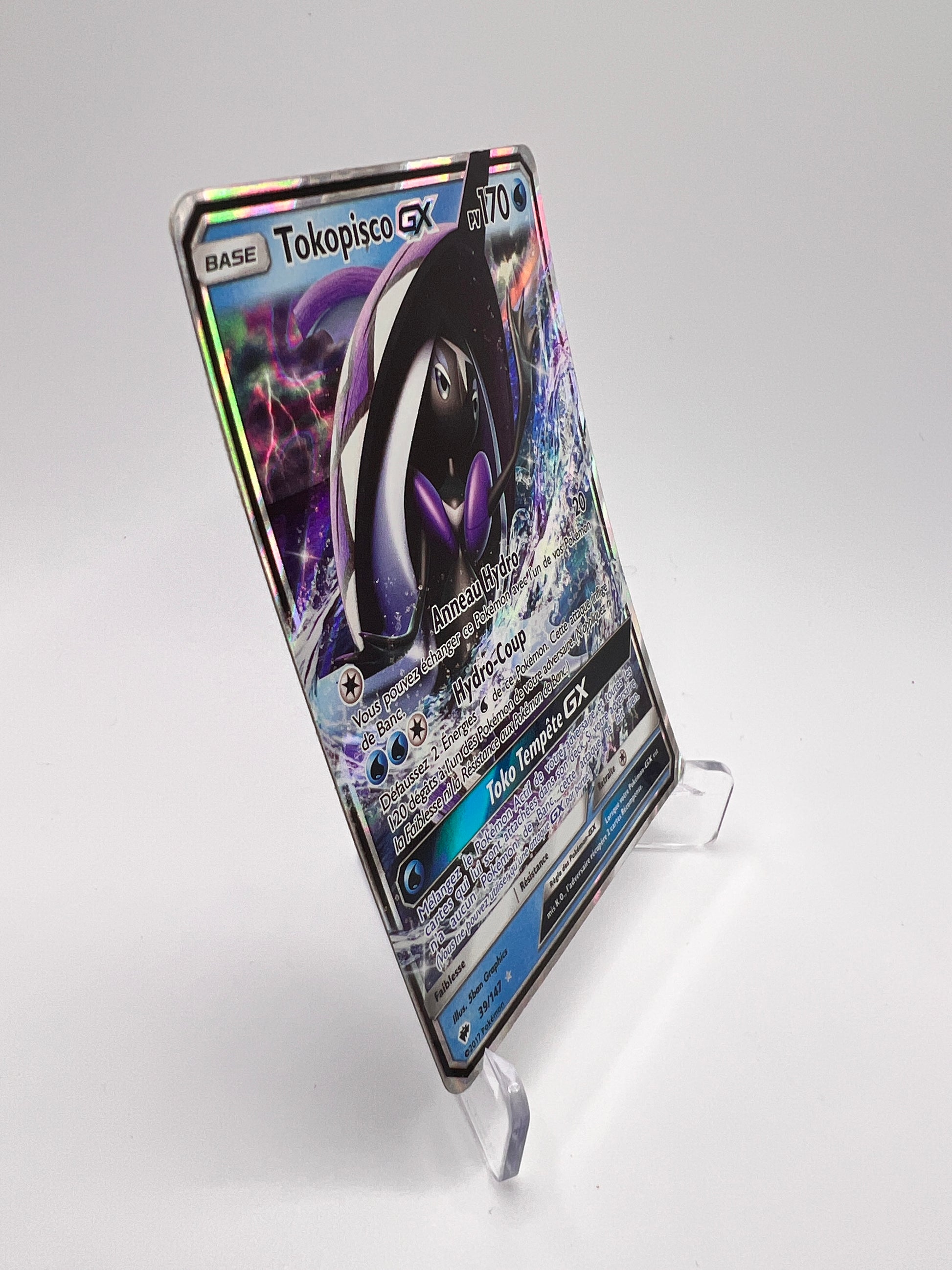 Tokopisco est l’un des Gardiens d’Alola, symbole d’équilibre et de protection, très apprécié pour son aura mystique. Cette version GX d’Ombres Ardentes combine identité légendaire et puissance visuelle, en faisant une carte recherchée pour les collections Alola et Ultra Rares de l’ère Soleil & Lune.